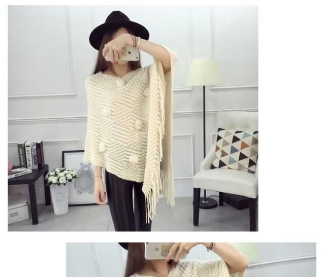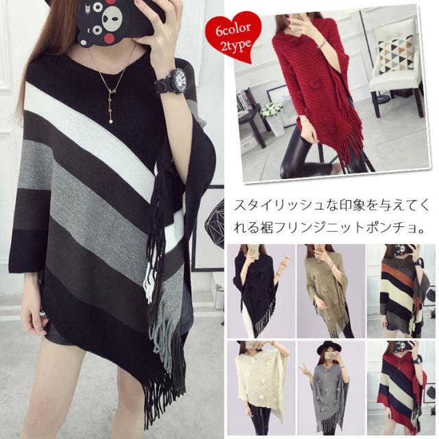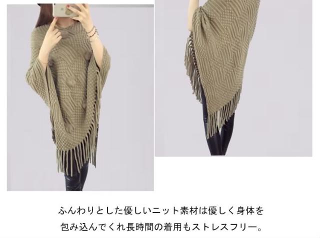 フリンジニット トップス レディース ポンチョ ニット ポンチョ 秋冬