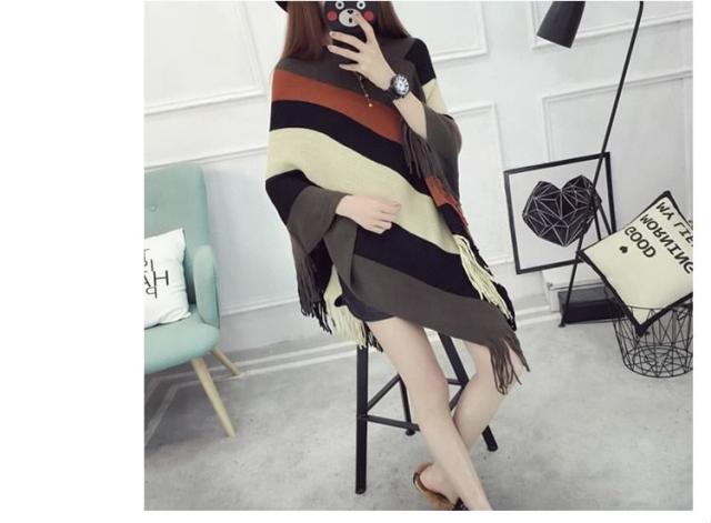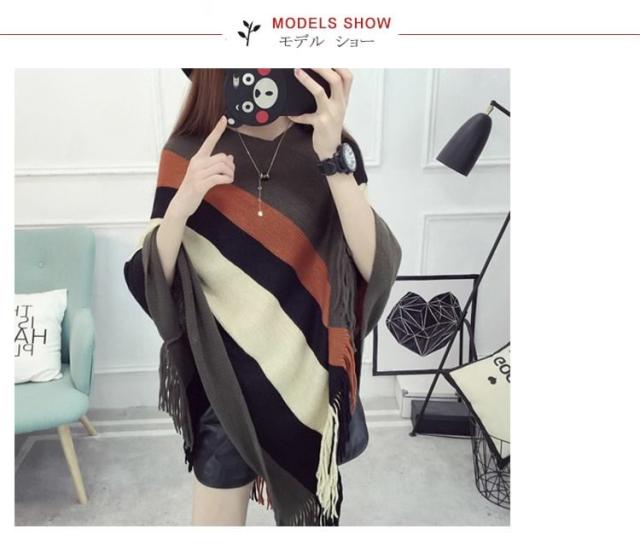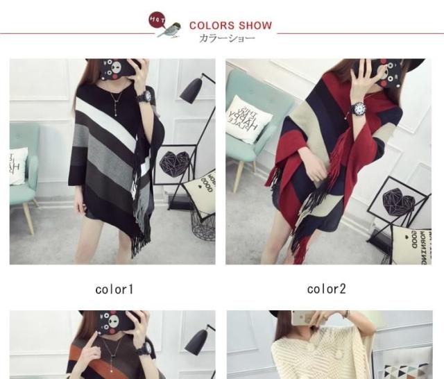 ニット ポンチョ レディース フリンジニット ニットポンチョ プルオーバー トップス ニットトップス カラフル 体型カバー 春ニ