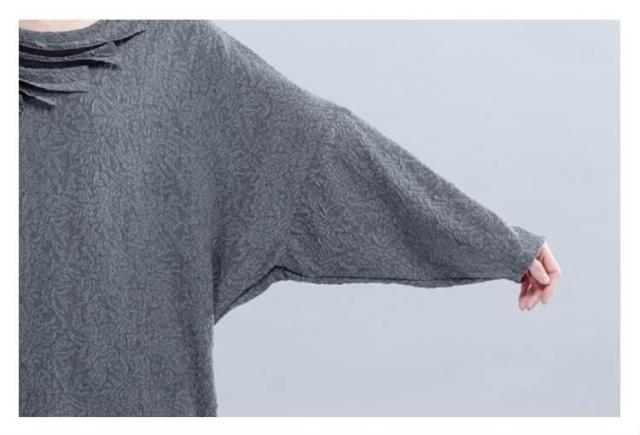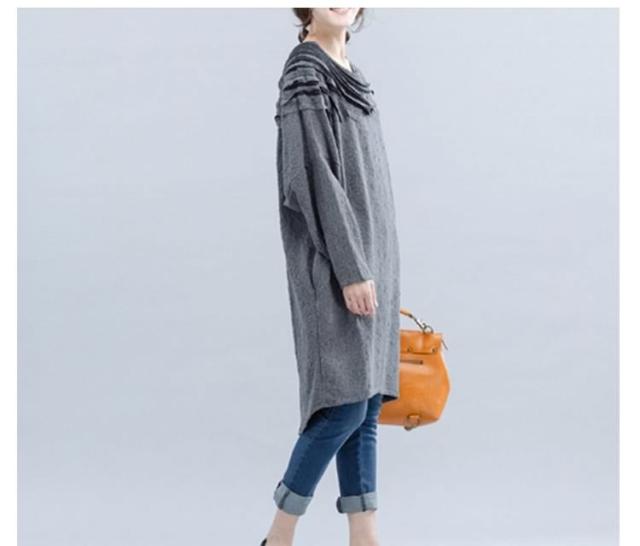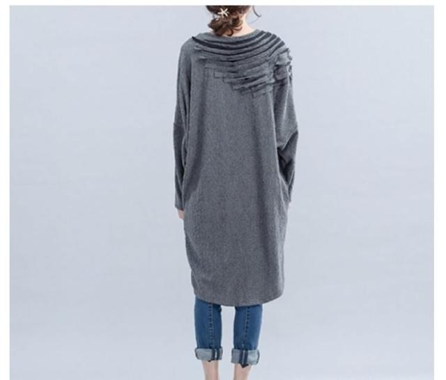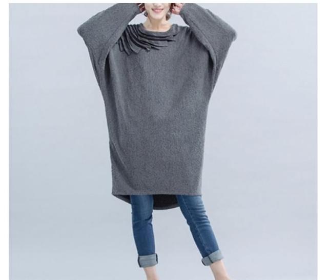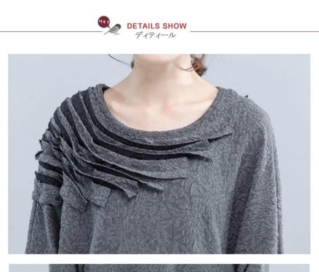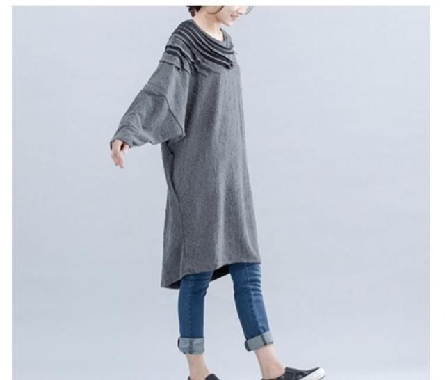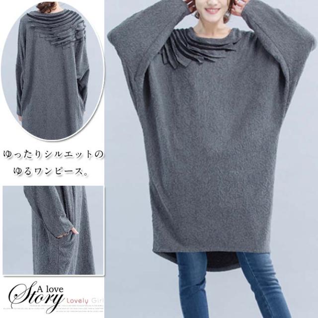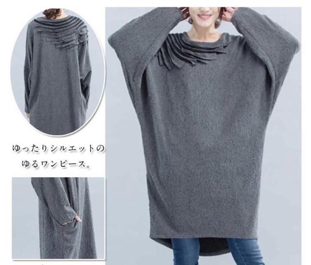 ワンピース ミディアム丈ワンピース チュニックワンピース ドルマン ドルマンスリーブ 長袖 フリル HS レース 花柄レース ゆったり 楽ちん 楽ちんワンピ グレー