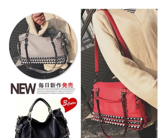 バッグ ショルダーバッグ トートバッグ ハンドバッグ スタッズ メタリック レディース レディースバッグ 鞄 かっこいい 新作 カジュアルバッグ カジュアル 黒 灰色 銀色 銀 ブラック チャコールグレー チャコール シルバー