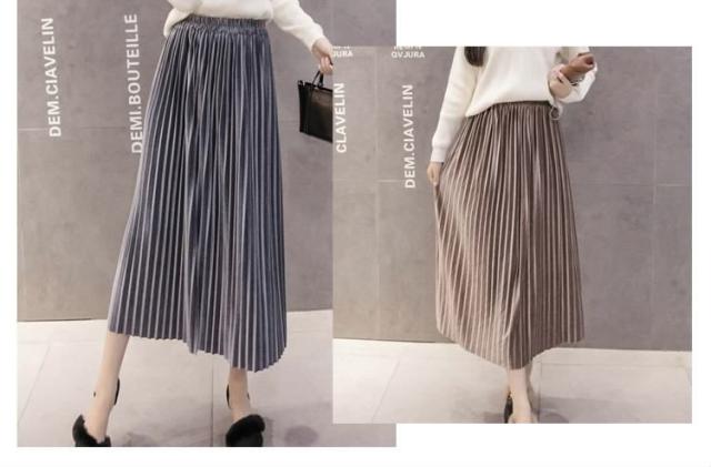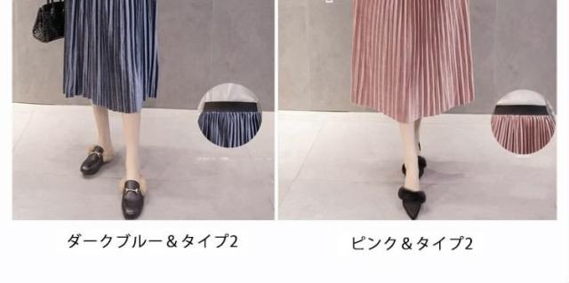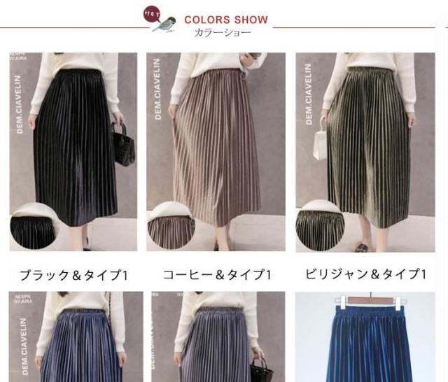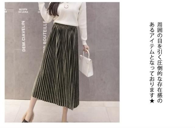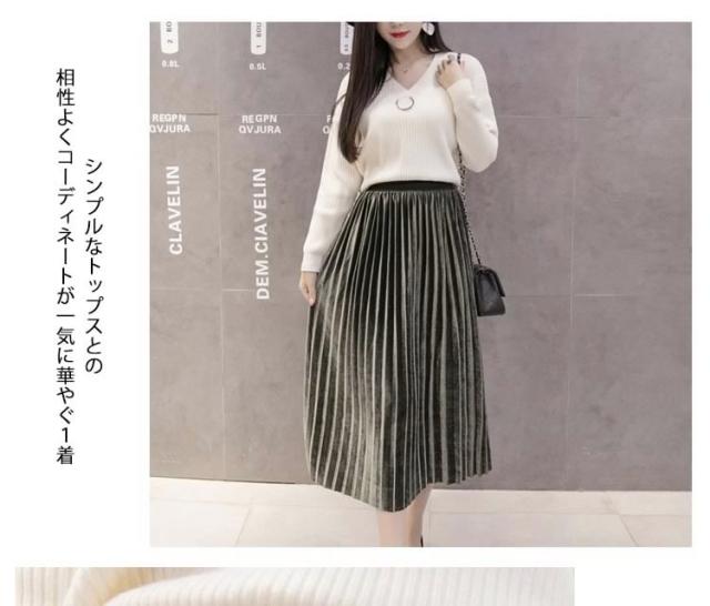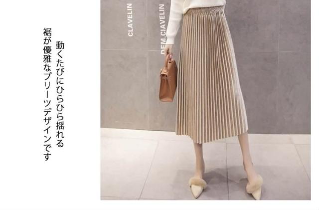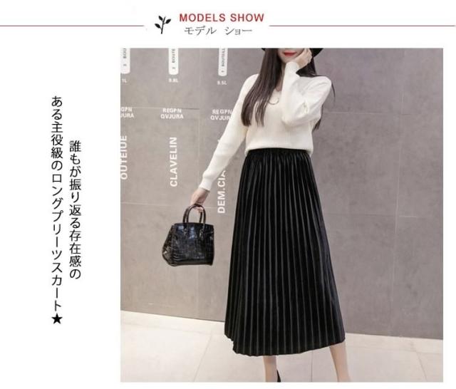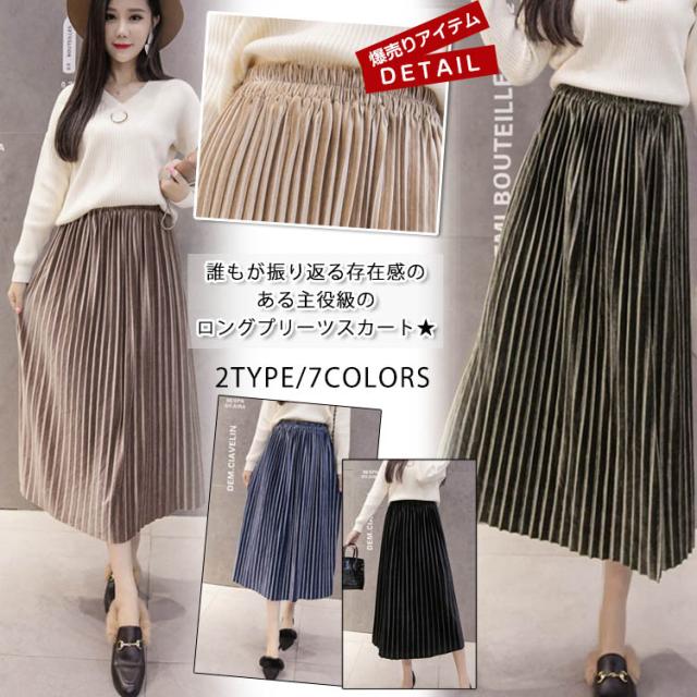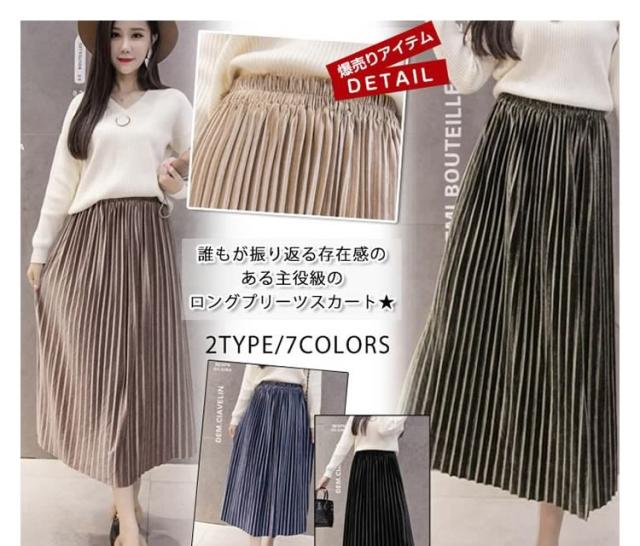 送料無料ベロアプリーツスカート/ミモレ丈プリーツスカート/ロング丈/プリーツスカート/ベロアスカート/レディース/きらきら/無地/ウエス