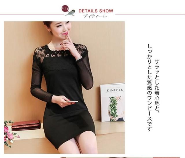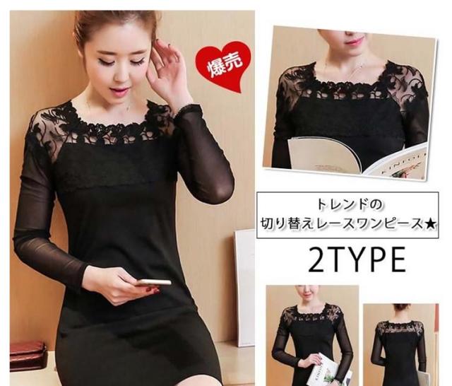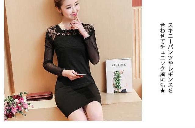 | トレンドの切り替えレースワンピース★やわらかく着心地の良いレース素材★スキニーパンツやレギンスを合わせてチュニック風にも★ | |