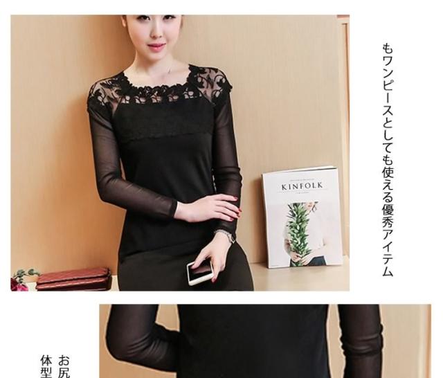 送料無料Tシャツワンピース/ロングTシャツ/レデイース/チュニック/チュニックワンピ/レースワンピース/長袖/袖透け/チュール/無地/Tシャ
