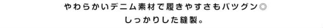 | 大人気!トレンド中の女の子デニムパンツです。やわらかいデニム素材で履きやすさもバツグン◎ 通園・通学等の普段使いやお出掛けにも幅広く活躍! | |