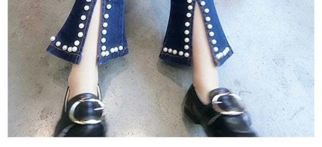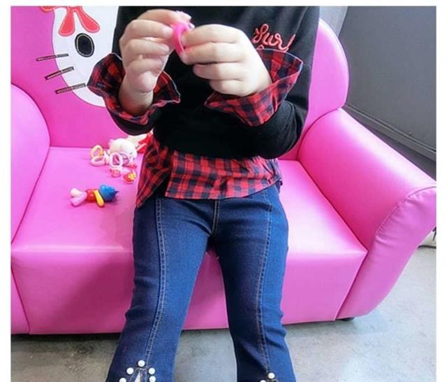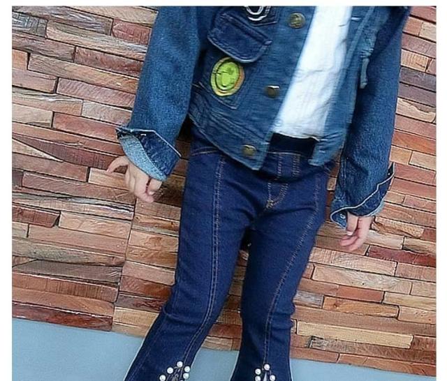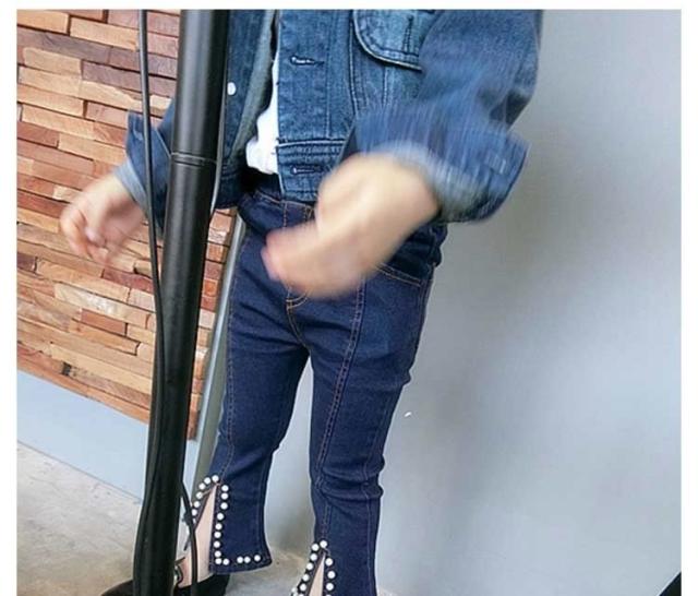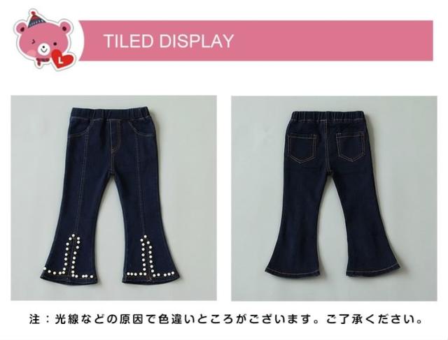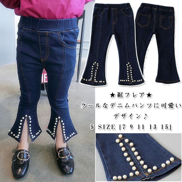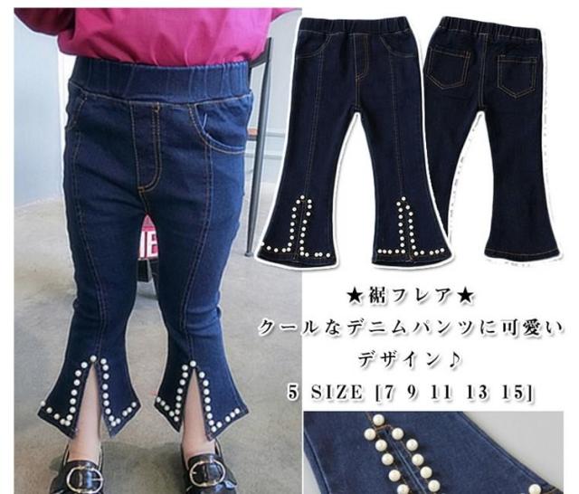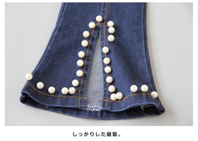 女の子 ジーンズ デニムパンツ 裾フレア デニムパンツ パール付き デニム ロングパンツ 子供 デニム パンツ ボトムス カジュアルパンツ