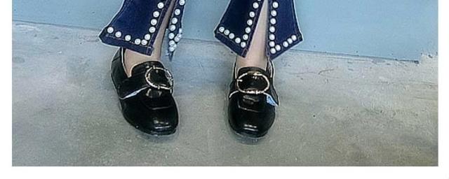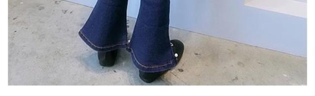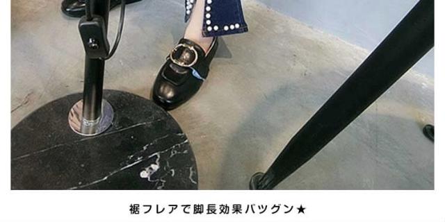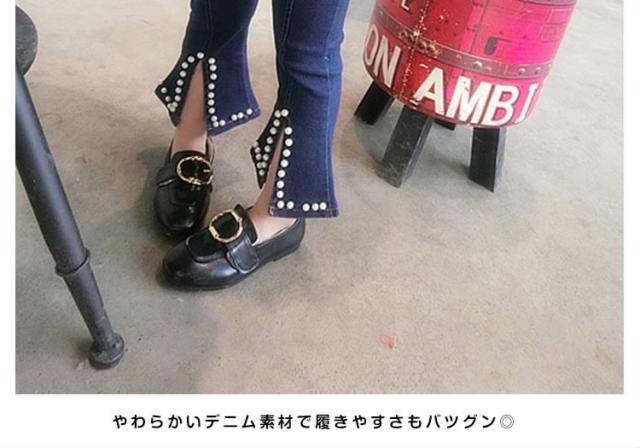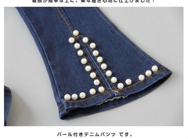 デニムパンツ 裾フレア パール付き