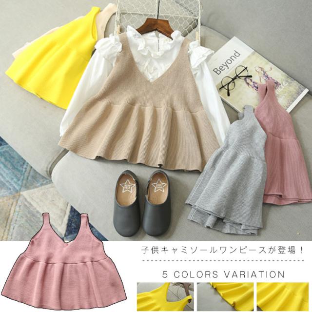 女の子 ニット ワンピース ノースリーブ ニット キャミソールワンピース 子供 キャミワンピース レイヤード 重ね着 秋 冬