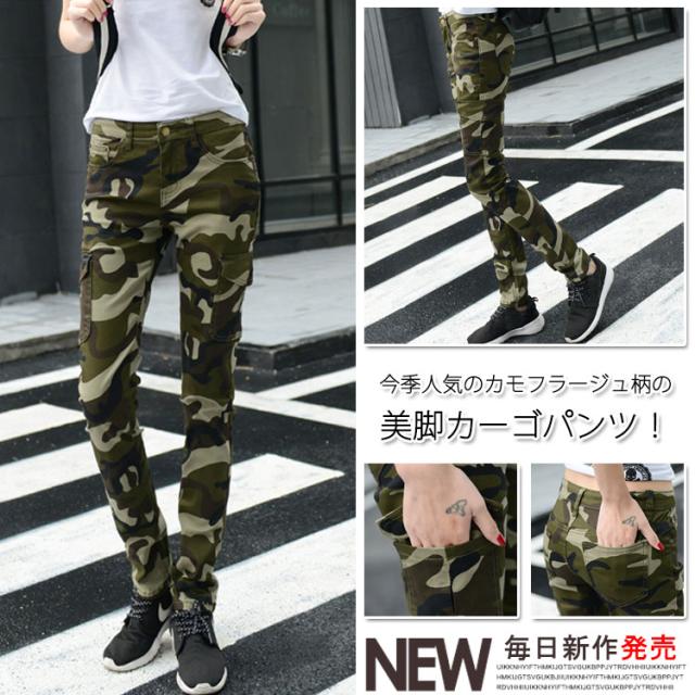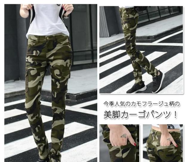 ワークパンツ カーゴパンツ レディース 迷彩柄カーゴパンツ カモフラ柄 スキニーパンツ スキニー ロングパンツ カモフラージュ