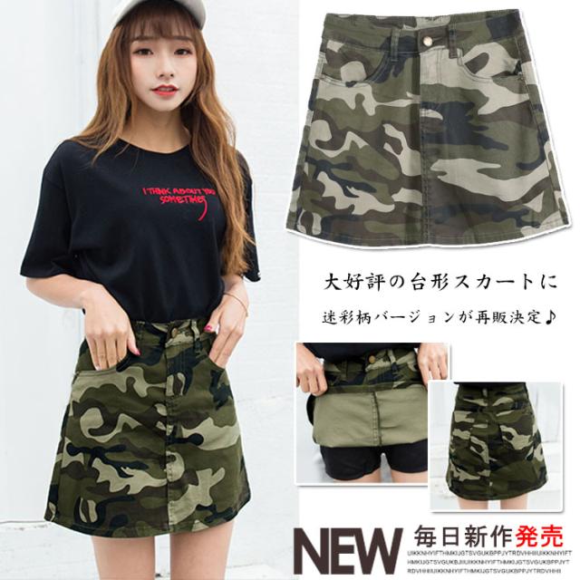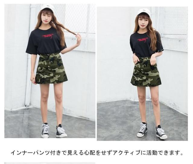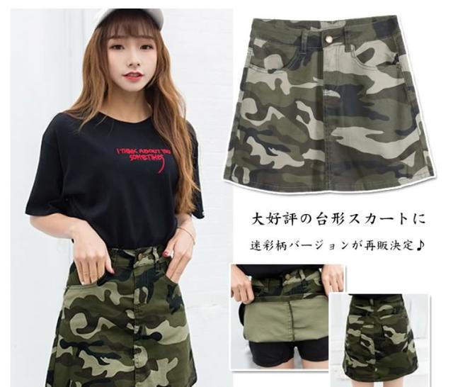 チラ見せ防止インナー付!ミリタリー迷彩柄 ミニスカート 台形スカート レディース 迷彩柄スカート 迷彩スカート カモフラージュ aラ
