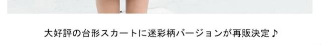 | 大好評の台形スカートに迷彩柄バージョンが再販決定♪インナーパンツ付きで見える心配をせずアクティブに活動できます。ミニ丈なので脚長効果も抜群☆縦のラインを強調した台形シルエで、気になる腰回りをすっきりカバー。 しっかりとした素材で、穿くたびに生地独特のこなれた風合いに。 カジュアルなスタイリングに欠かせないアイテム。 コンパクトシルエなので、ボリューム感のあるトップスとも相性◎ | |