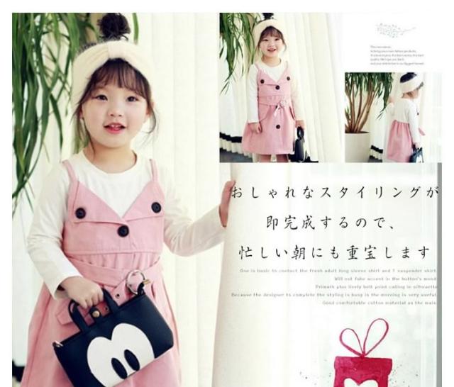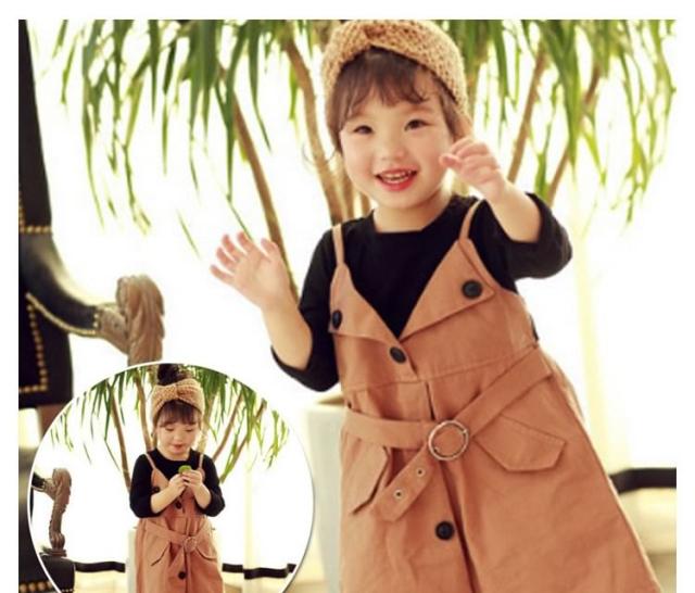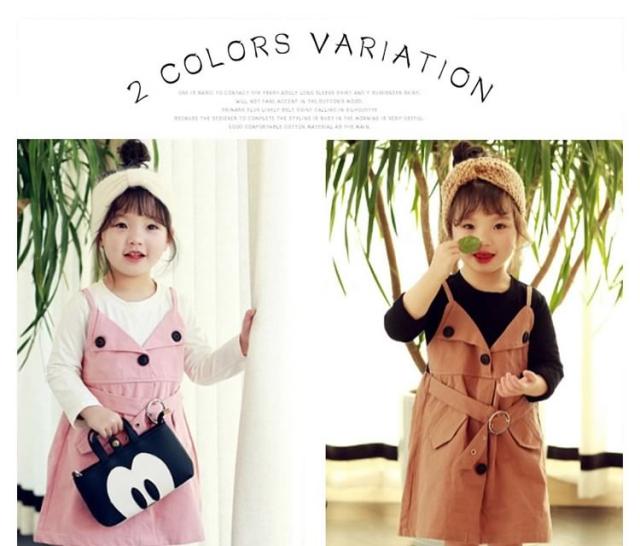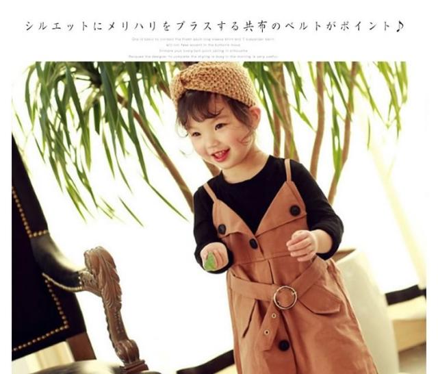 ベーシックな長袖Tシャツと大人っぽいサスペンダースカートをドッキングさせたワンピース 女の子ワンピース 子供服 長袖 フェイクレイヤード お洒落 キュート