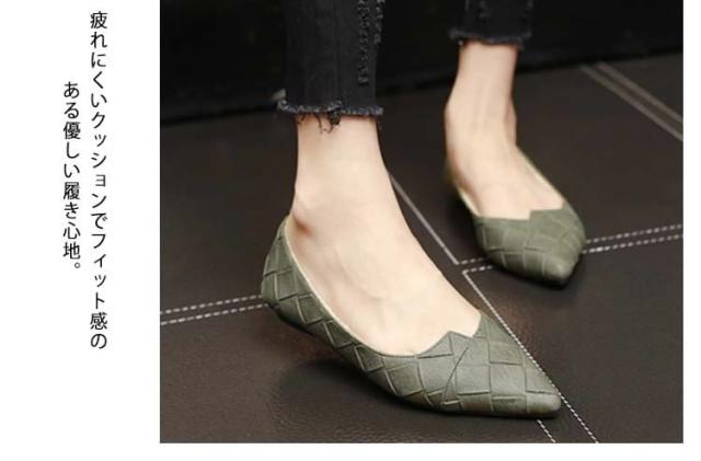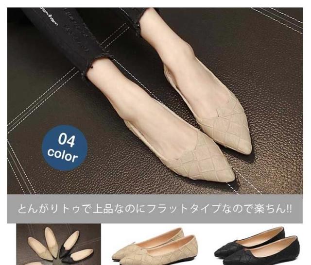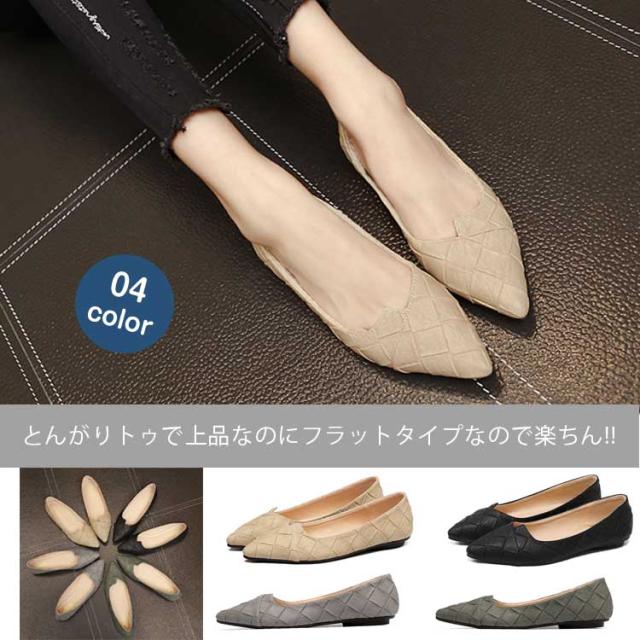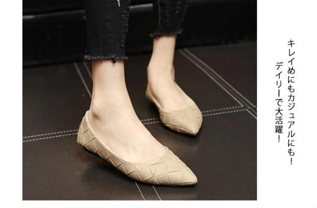 ポインテッドトゥで上品なのに楽ちん。フラットシューズ パンプス ぺたんこ 春シューズ 靴 レディース