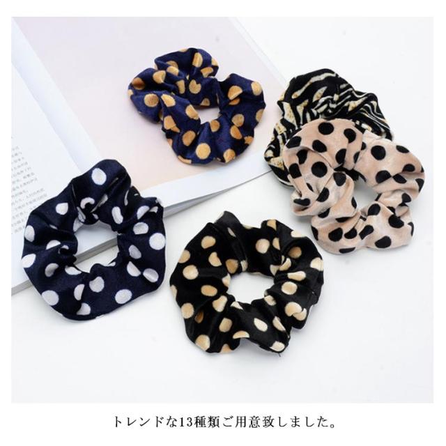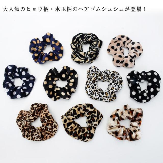 全13種類!レディースシュシュ ドット柄 水玉柄 ヒョウ柄 豹柄 シュシュ ヘアゴム ヘアアクセサリー ヘアアクセ 髪留め 大人用 おしゃれ かわいい