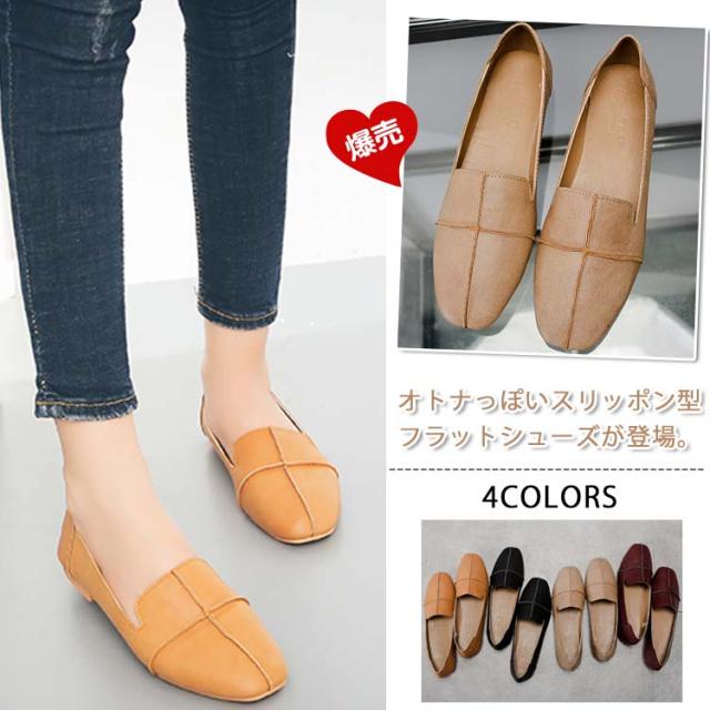 ナチュラルでベーシックのカラーリング。フラットシューズ レディース スリッポン 妊娠用 ぺたんこ パンプス フラットパンプス スリッポ