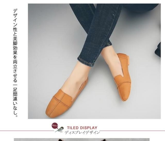 | オトナっぽいスリッポン型フラットシューズが登場。ローヒールなので、歩きやすく疲れにくい。さらに、インソールには低反発クッション入りで、疲れにくいのも嬉しい。長時間のお出かけにも最適ですね♪グリップ力のあるアウタソールで滑り防止効果も抜群。デザイン性と美脚効果を両立させる一足間違いなし。 | |