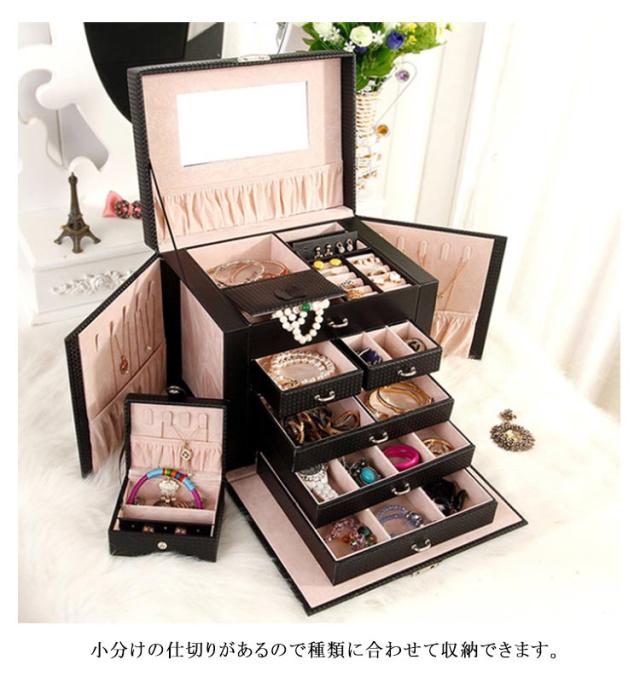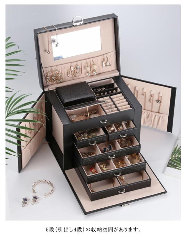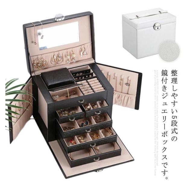 充実の収納力!ジュエ ス 5段式 大容量 鍵付き ジュエリーケース ジュエリー収納 アクセサリーケース アクセサリー入れ 収納ケース ピアス イヤリング ネックレス 指輪 リング おしゃれ 高級感 プレゼント ギフト インテリア