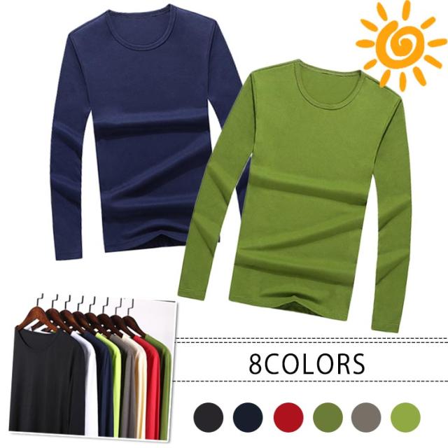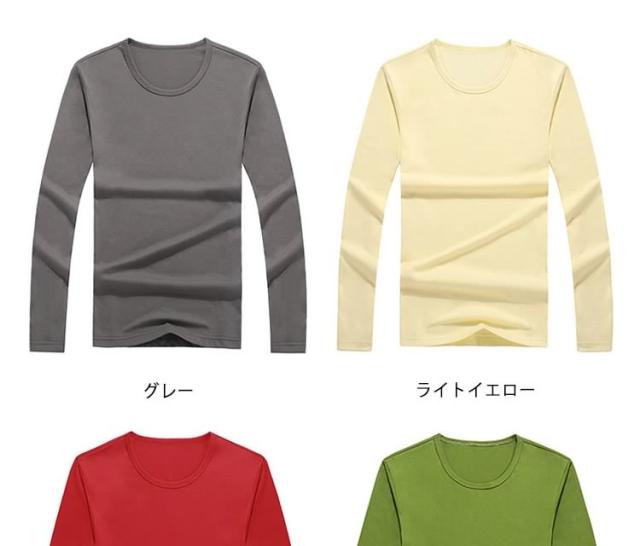 メンズ インナーシャツ 長袖 Tシャツ カットソー ロングTシャツ 丸い襟 無地 秋服 秋物