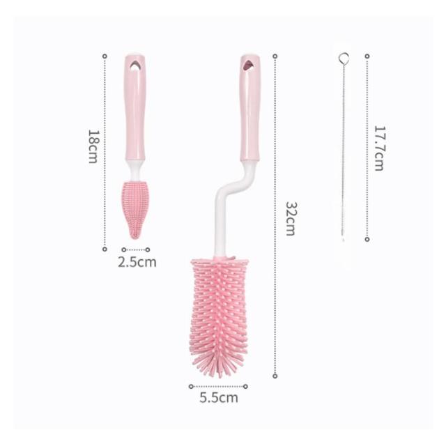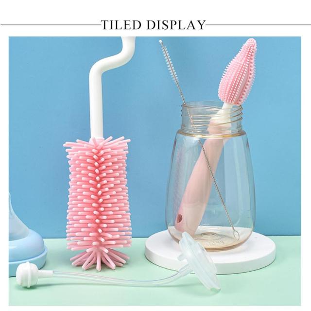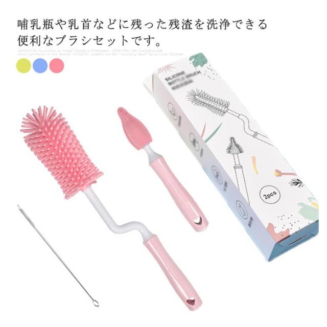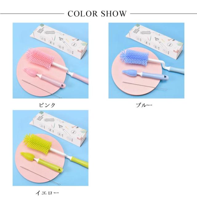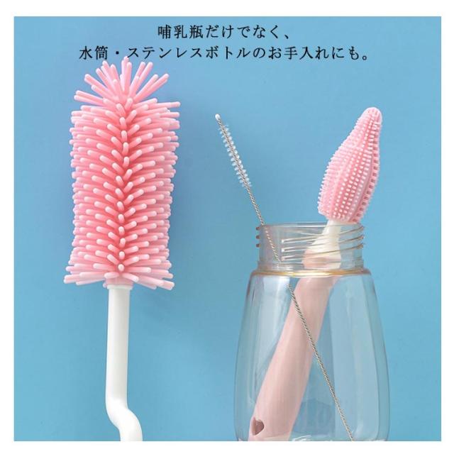 ボトルブラシ 哺乳瓶ブラシ 乳首ブラシ 水筒 洗浄ブラシ シリコン ブラシセット 3点セット 360度回転 使いやすい 持ち運び ベビー用品 出産お祝い