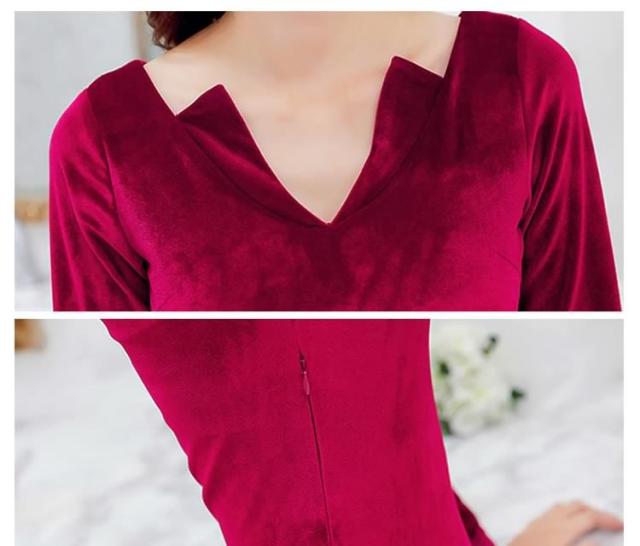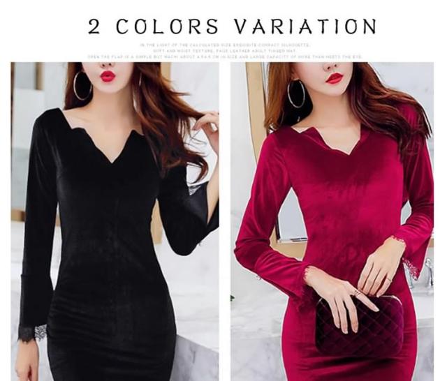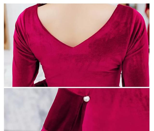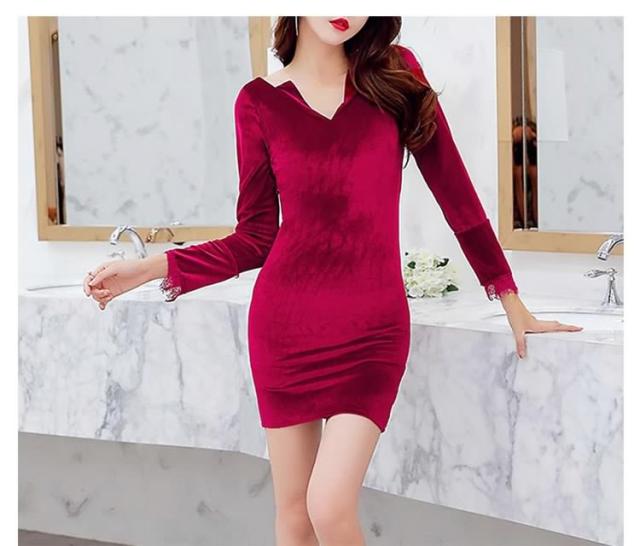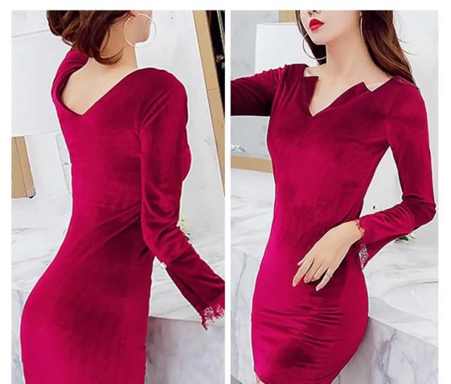 ベロアタイトワンピース Vネックワンピース ベロア素材 タイトワンピース パーティードレス ミニドレス タイト 長袖ワンピース 美脚 秋 冬