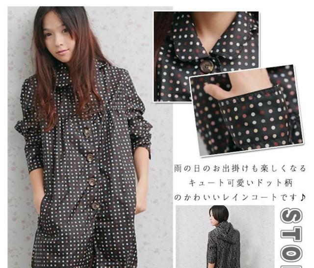 | 雨の日のお出掛けも楽しくなるキュート可愛いドット柄のかわいいレインコートです♪ 頭がすっぽりと隠れるフードつき☆ 両サイドには大きめなポケットが2つ付いています。 憂鬱な雨の日が楽しくなる、おしゃれな雨の日ウェア。通勤に、お出かけに、様々なシーンで活躍してくれます | |