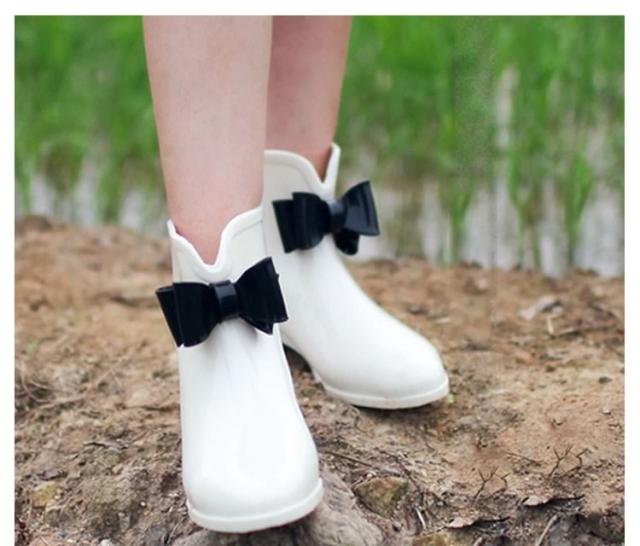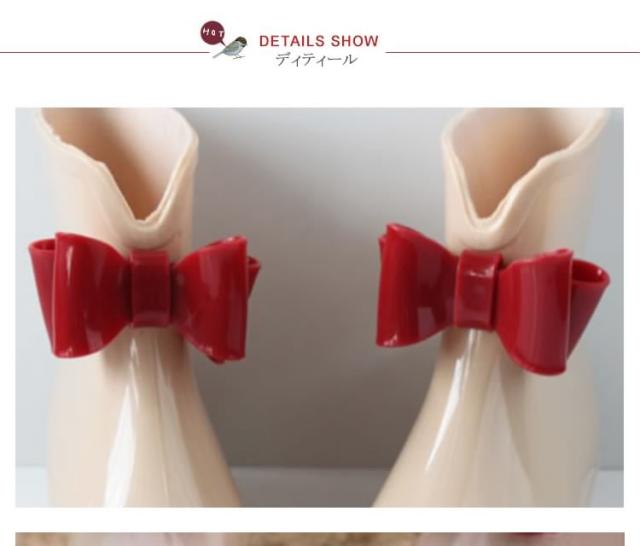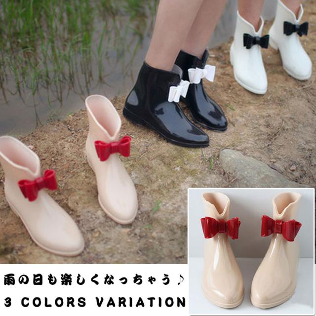雨の日も楽しくなる大人用レインブーツ リボンレインシューズ リボン レインブーツ ショート レインシューズ ブーツ レディース 雨の日