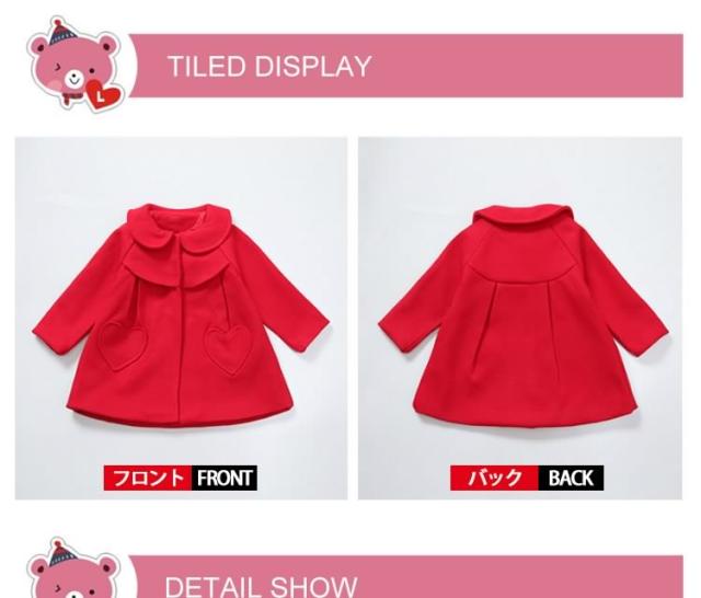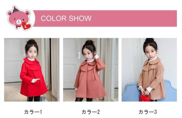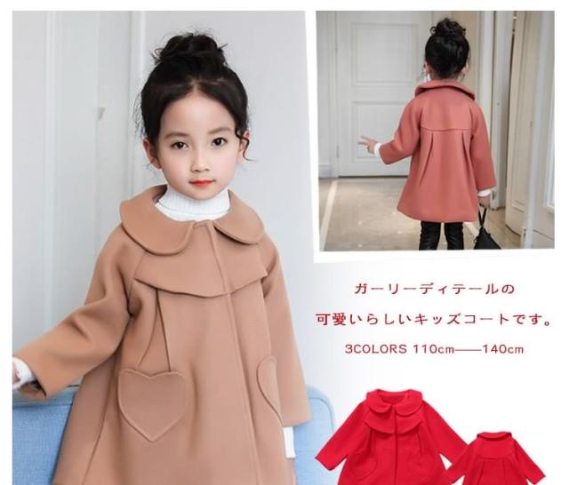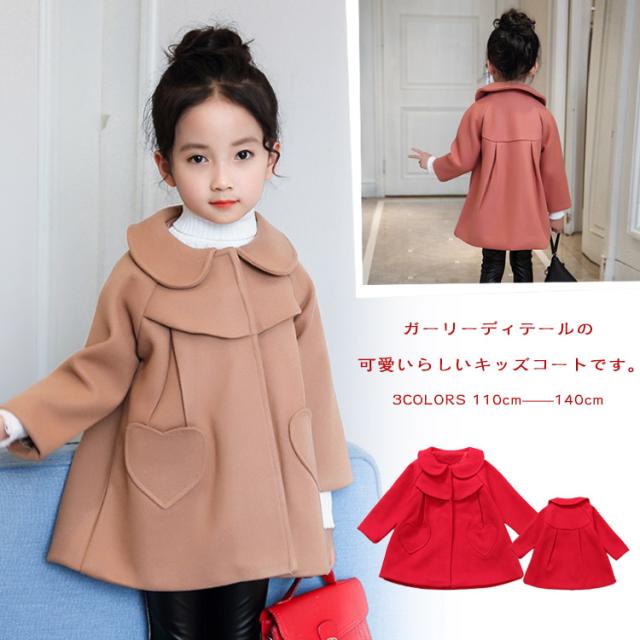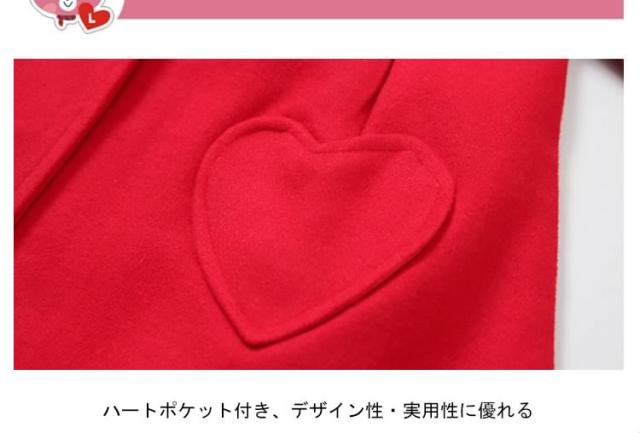 キッズコート 女の子コート 子供服 ハート アウター Aライン スナップボタン 丸襟 ギャザー キュート お洒落 スウィート