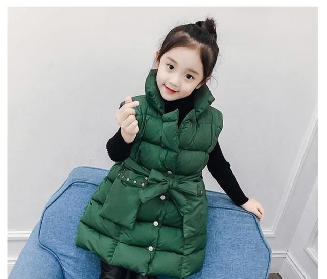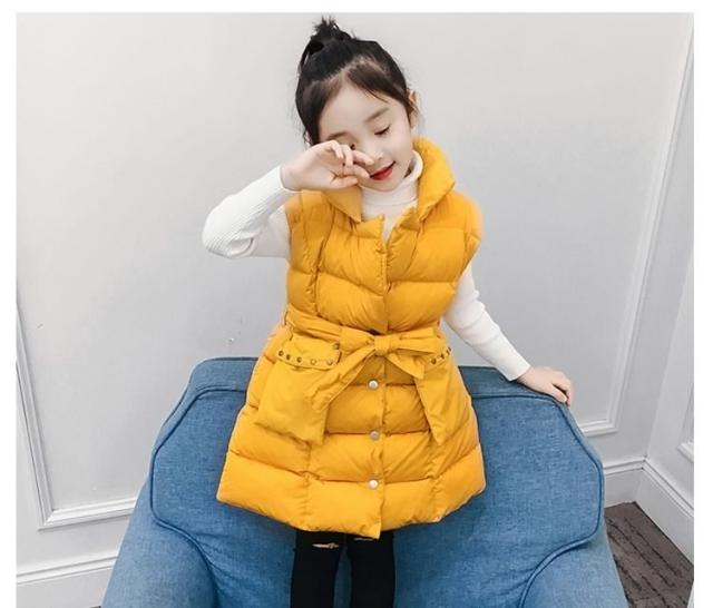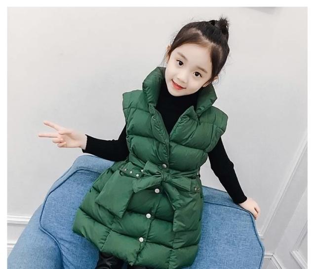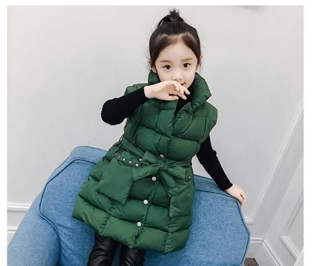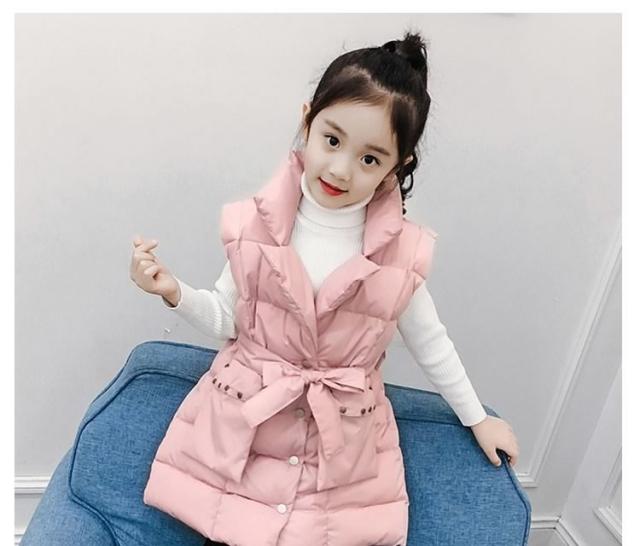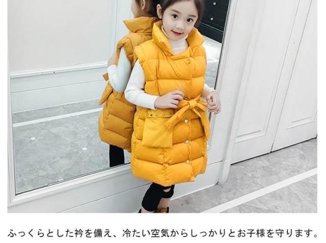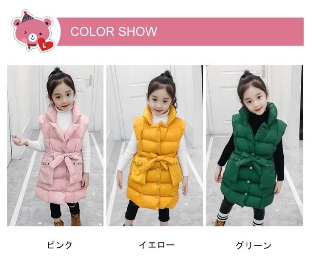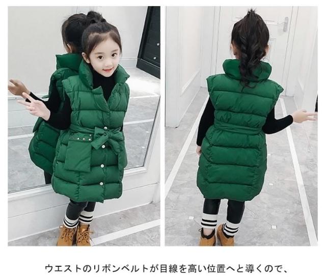 キッズ中綿いりベスト 女の子ベスト 子供服 リボン ベルト キュート アウター リベット お洒落 スナップボタン カジュアル