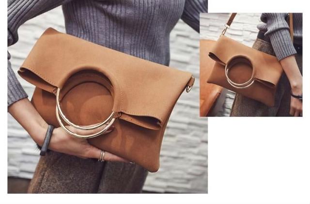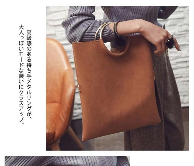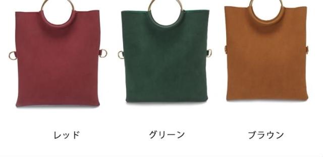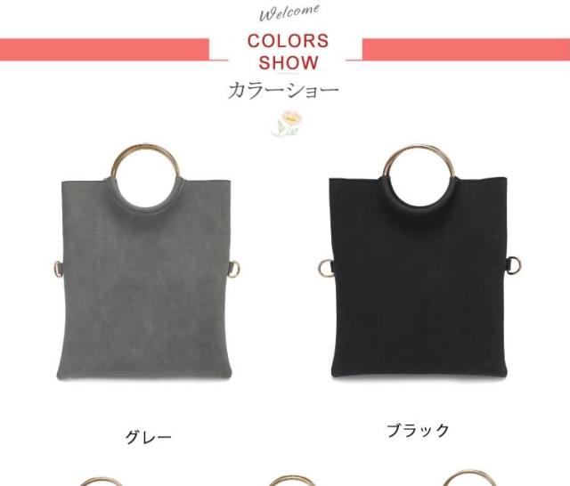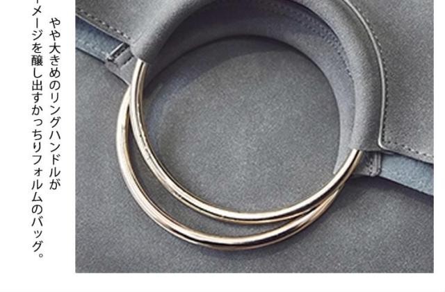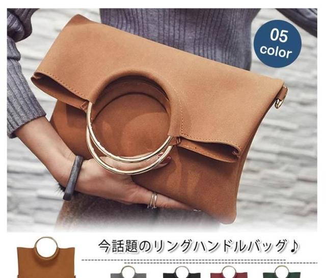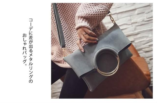 | 今話題のリングハンドルバッグ♪高級感のある持ち手メタルリングが、大人っぽいモードな装いにクラスアップ。 スタイリッシュなクラッチ・実用的なハンド・カジュアルなショルダー、とスタイルに合わせて3通りの持ち方を楽しめる万能デザインです♪きちんと感を演出してくれるキレイめデザインが、デイリーに活躍してくれます。 | |