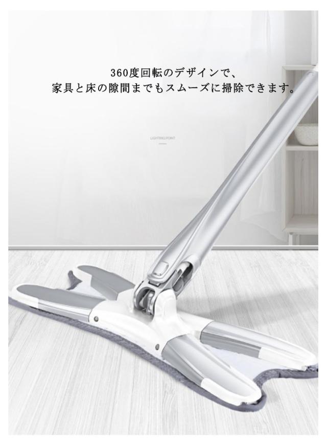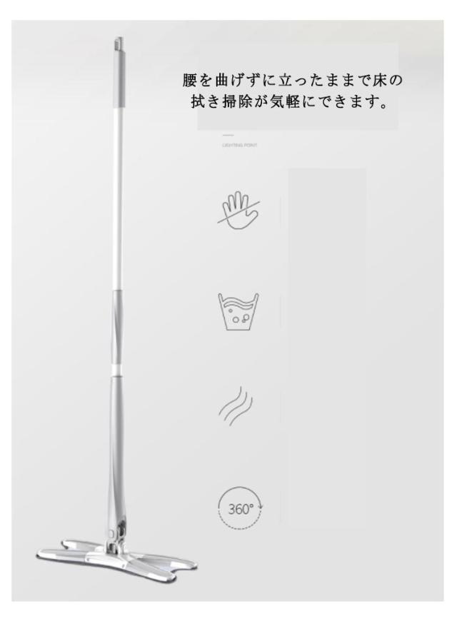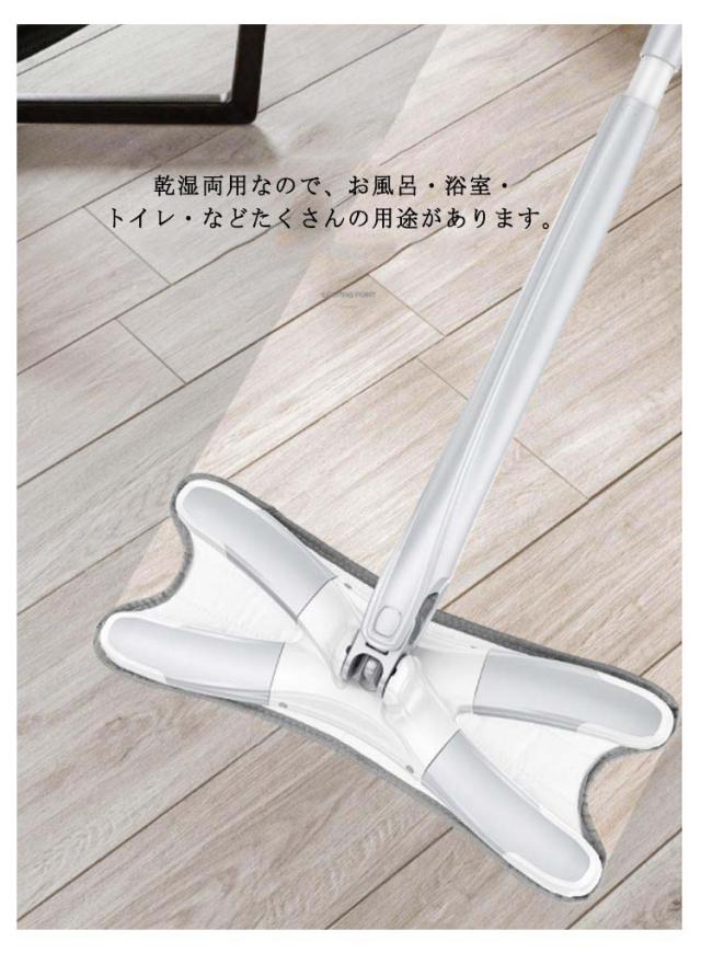 モップ フロアモップ 掃除用品 水拭き 乾湿両用 360度回転 腰曲げず 手を汚さない 床掃除 窓掃除 お風呂掃除 丸洗い可能 使いやすい