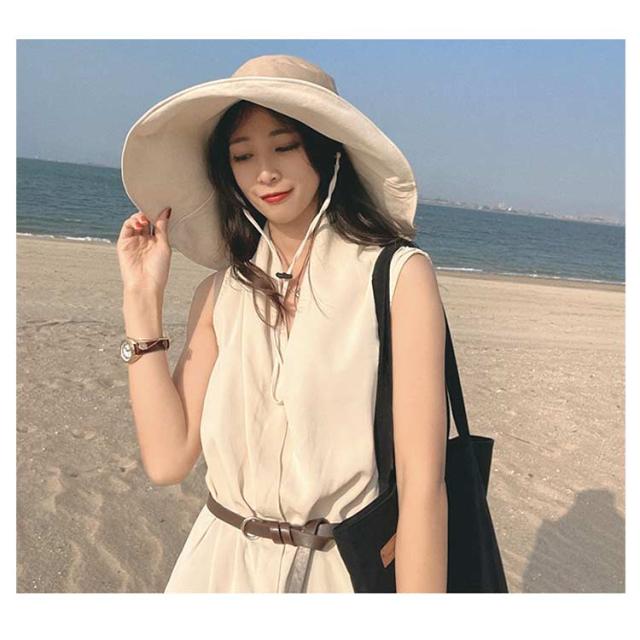 | ほどよい長さのあご紐付きだから、風が強い日でも飛ばされる心配がなくて安心。 デザイン性も高くオシャレだから、その日の気分やファッションによって、紐を付けても外しても◎ たたんでコンパクトにできるから、いつでもバッグの中でスタンバイOK。 曇り空の日に急に陽が差してもサッと被れて安心! 夏は熱中症対策に帽子は必須アイテム。16cmの大きなつばがお肌や命の危険を守ってくれる。小顔効果もあります!! | |