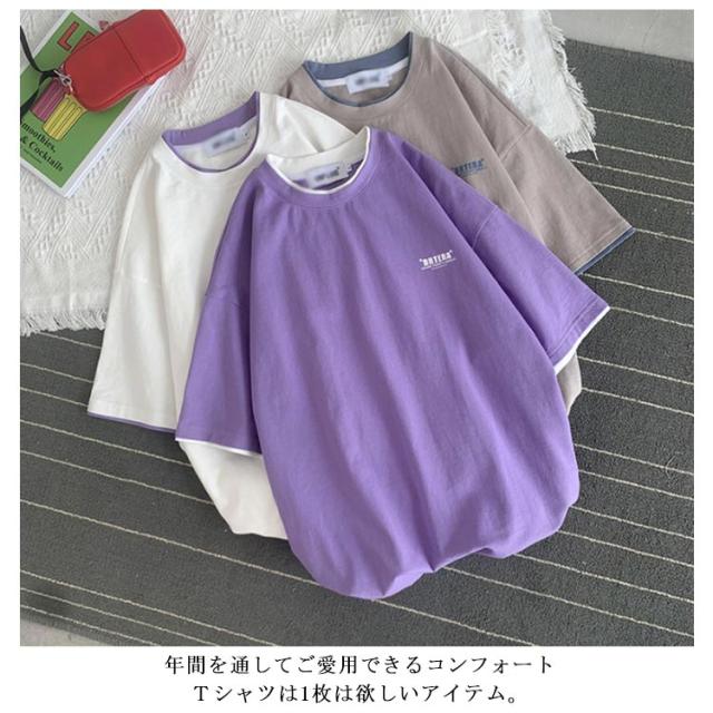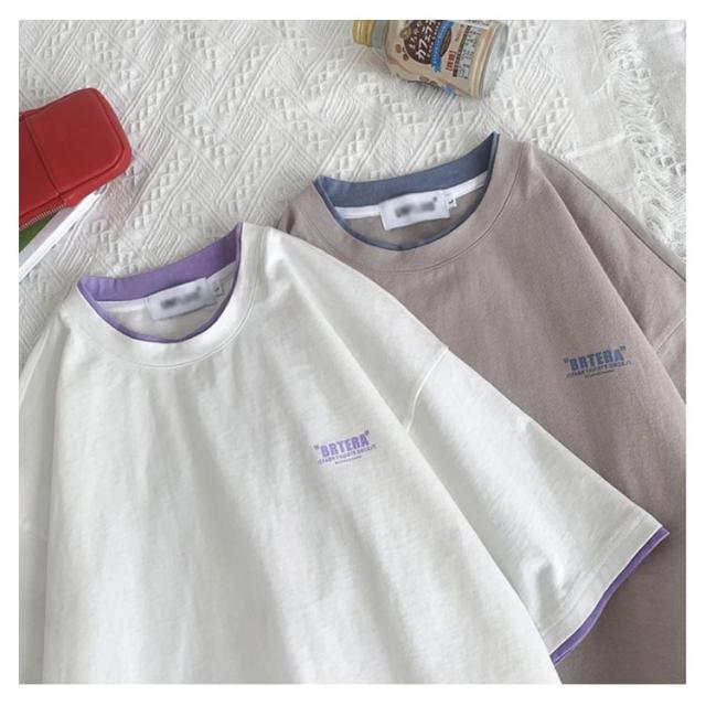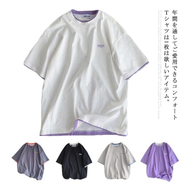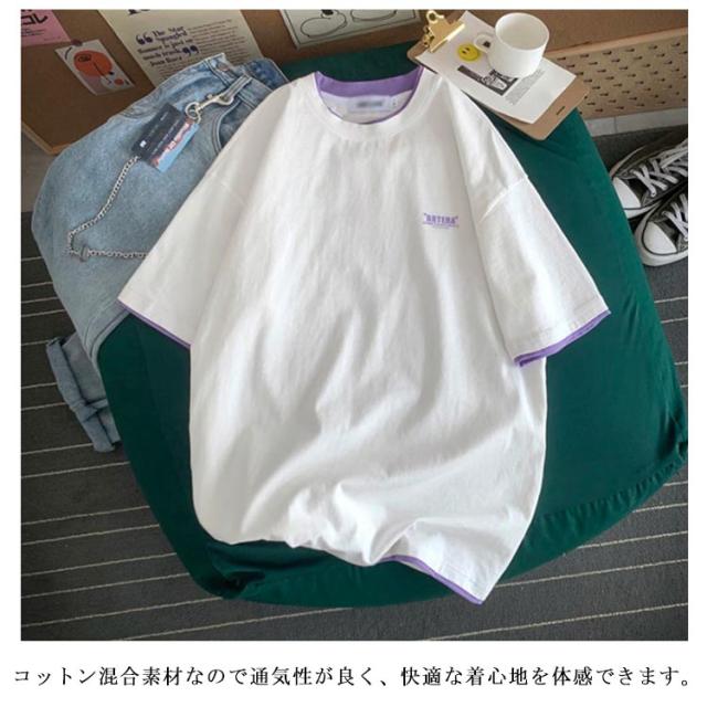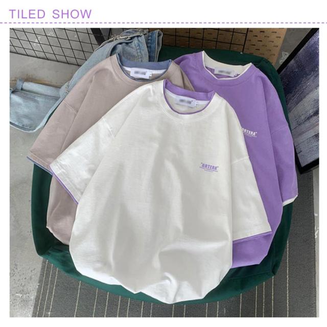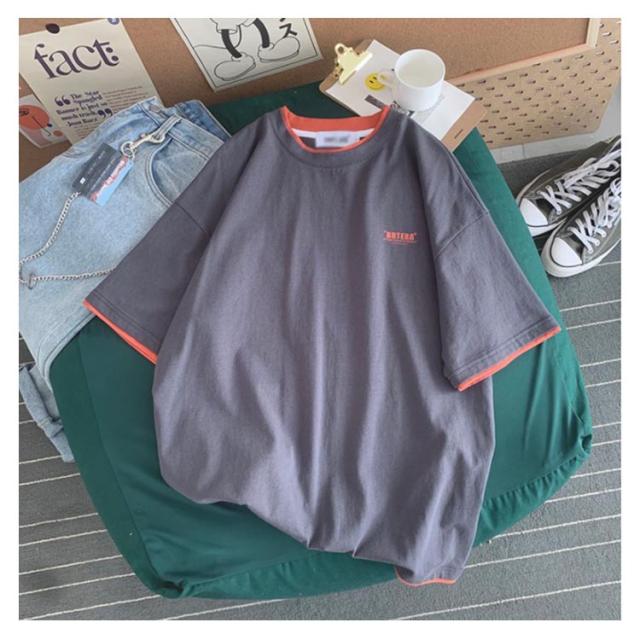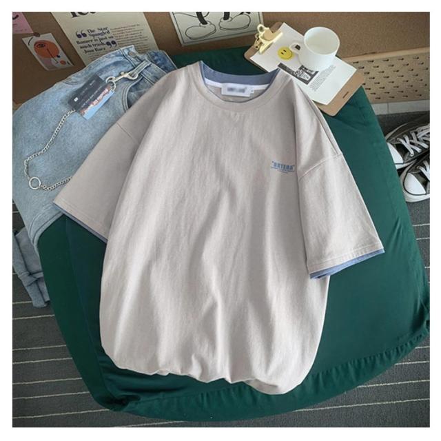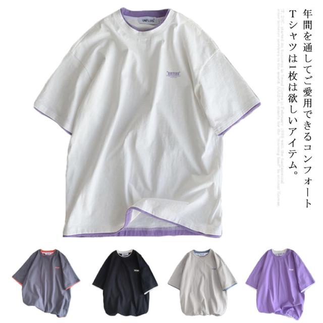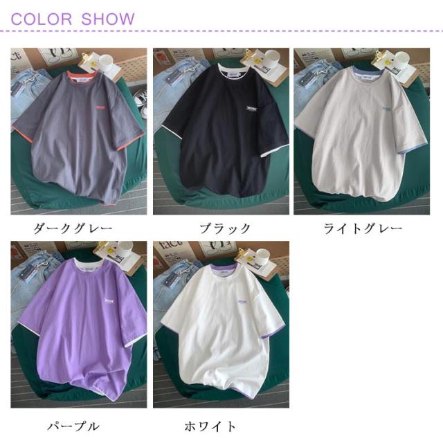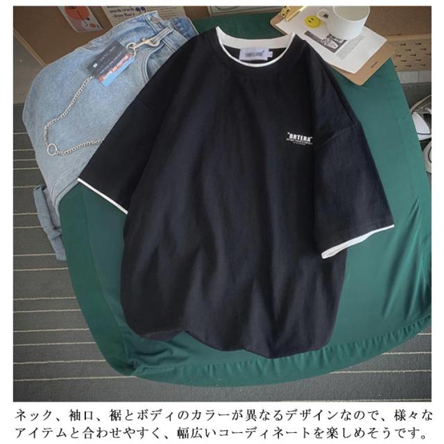 送料無料 半袖 Tシャツ トップス カットソー メンズファッション クルーネック プリント 重ね着風 半袖Tシャツ 韓国 カジュアル メンズファッション トップス