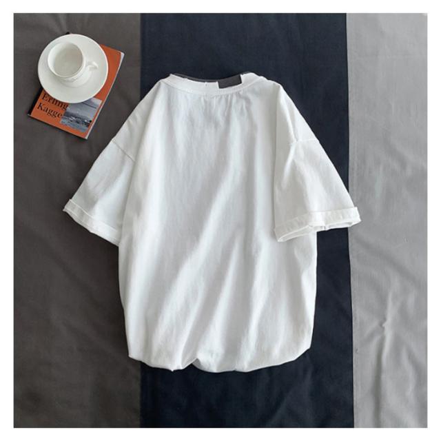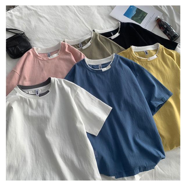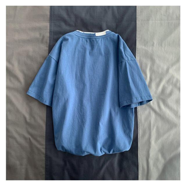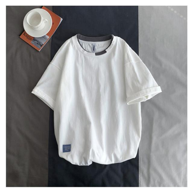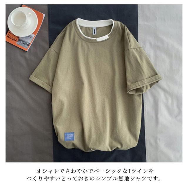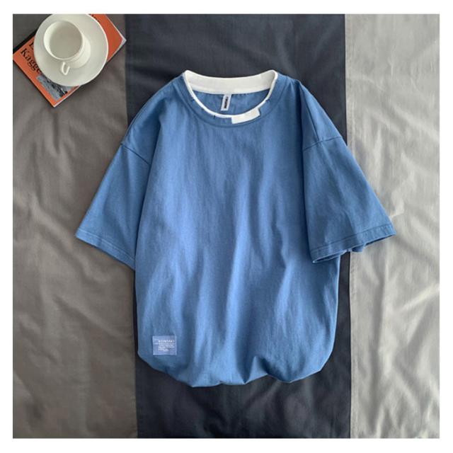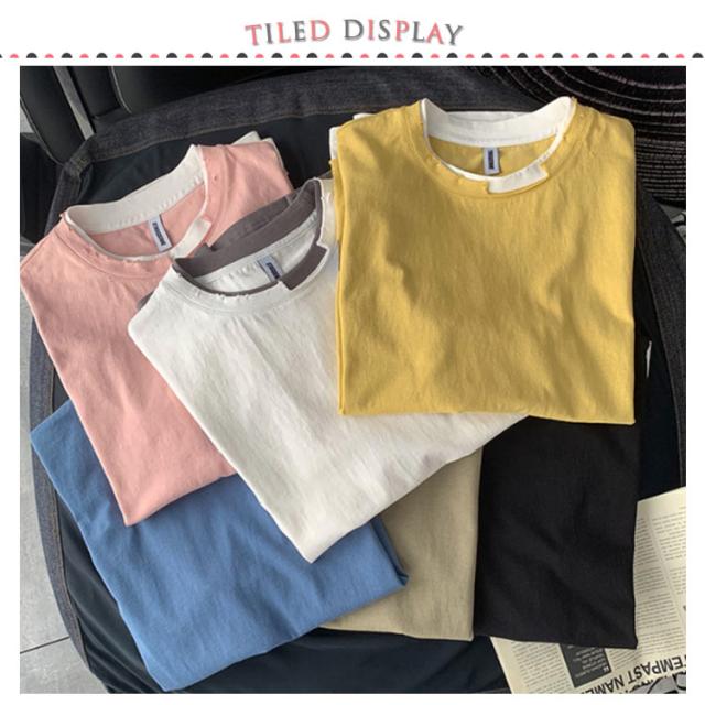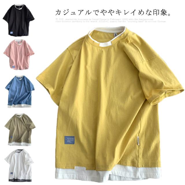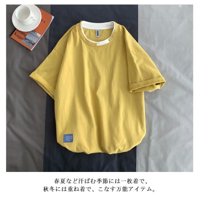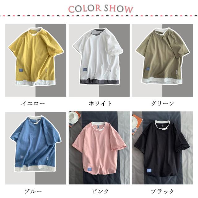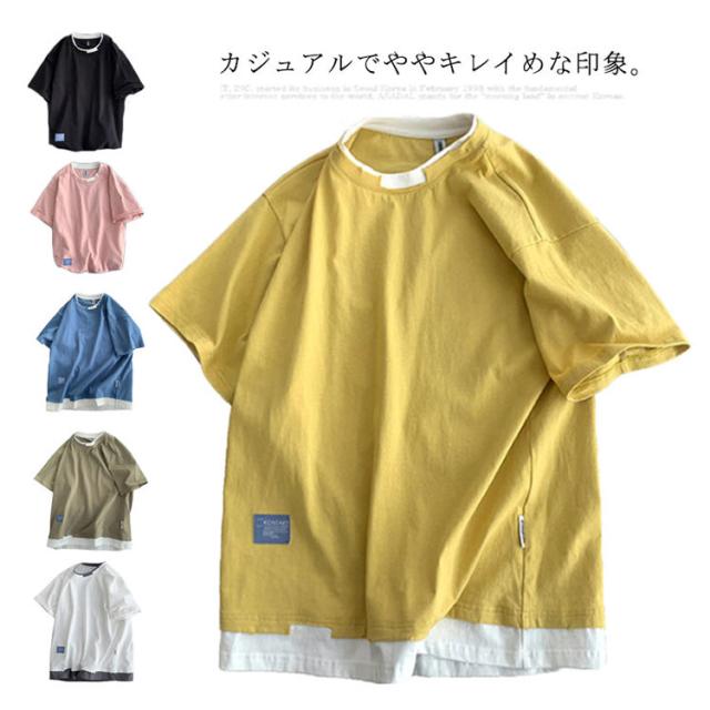 送料無料 半袖 Tシャツ トップス カットソー メンズファッション クルーネック ダメージ プリント 重ね着風 半袖Tシャツ 韓国 カジュアル メンズファッション トップス