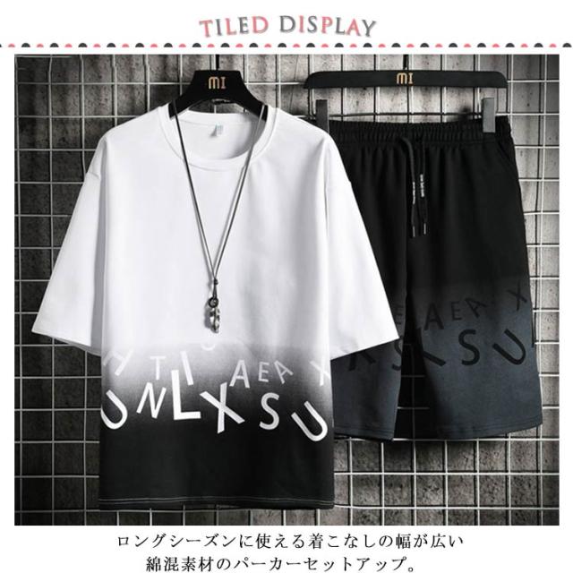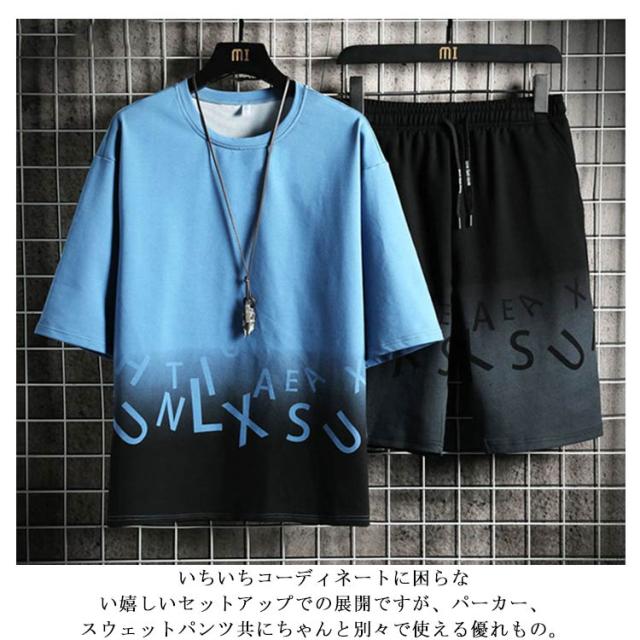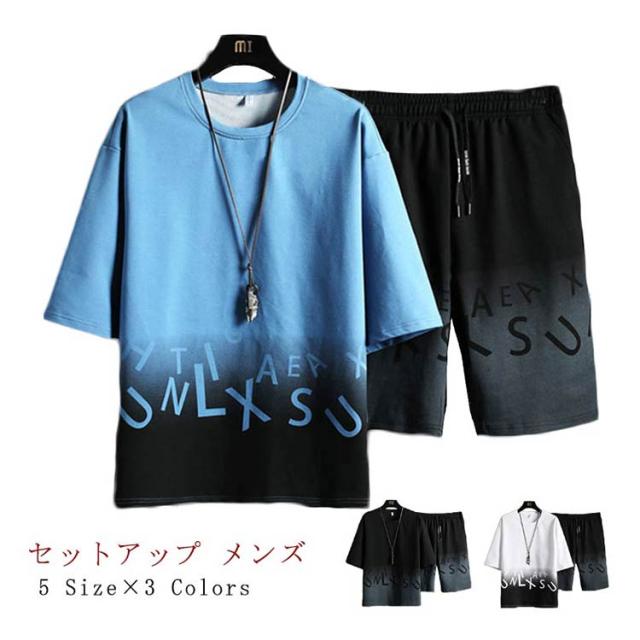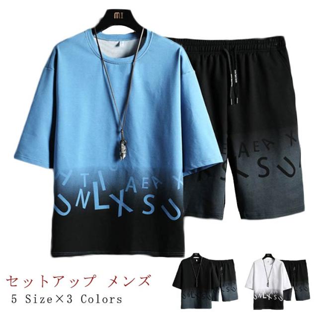 セットアップ メンズ 半袖 パーカー 春 夏 プルオーバー 2枚セット 大きいサイズ スウェット ジャージ トレーナー ハーフ パンツ セット 上下セット 部屋着 ルームウエア