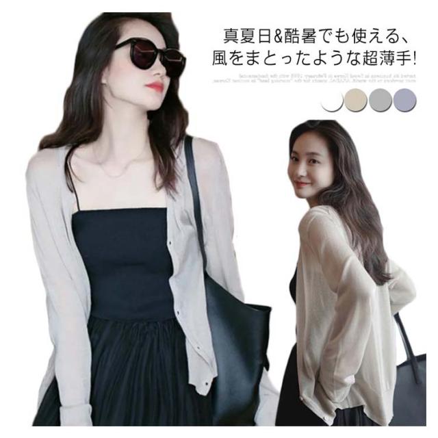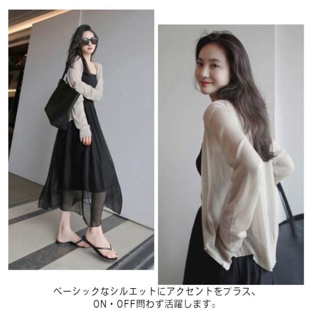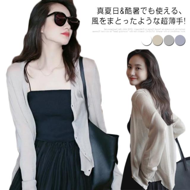 カーディガン レディース 春夏 UVケア 長袖 送料無料 薄手 紫外線対策 透かし きれいめ トップス サマー 軽 UVケア超薄手 Vネックカーディガン