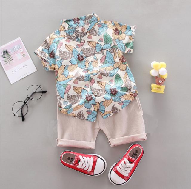 キッズ アロハシャツ Tシャツ 短パンツ 2点セット 夏 半袖 男の子 子ども服 韓国子供服 ネコポス送料無料