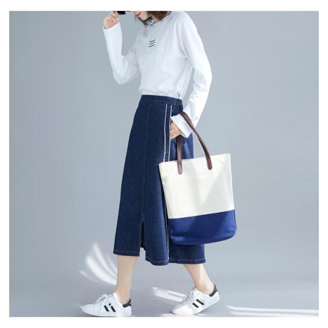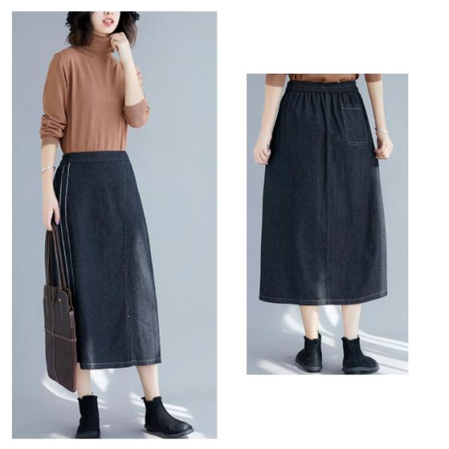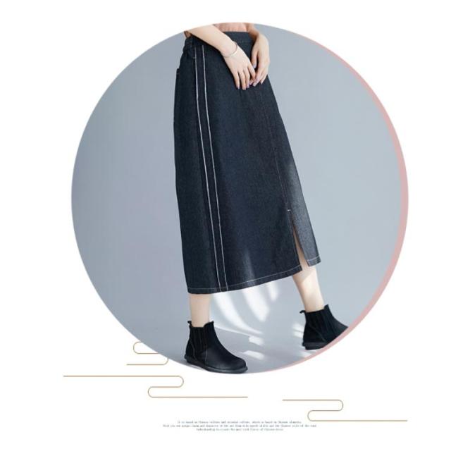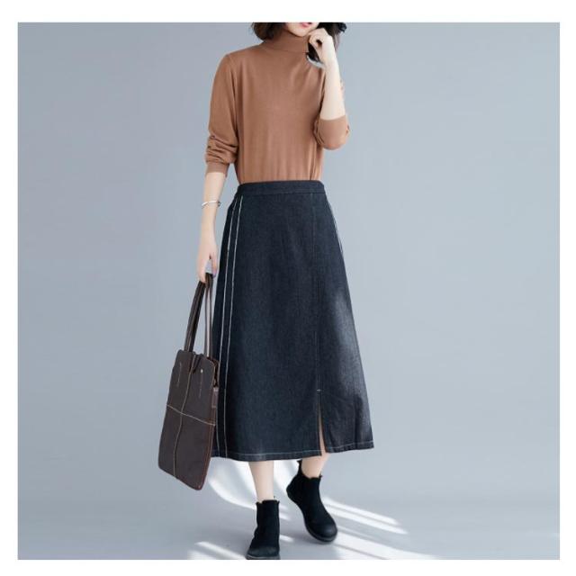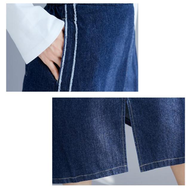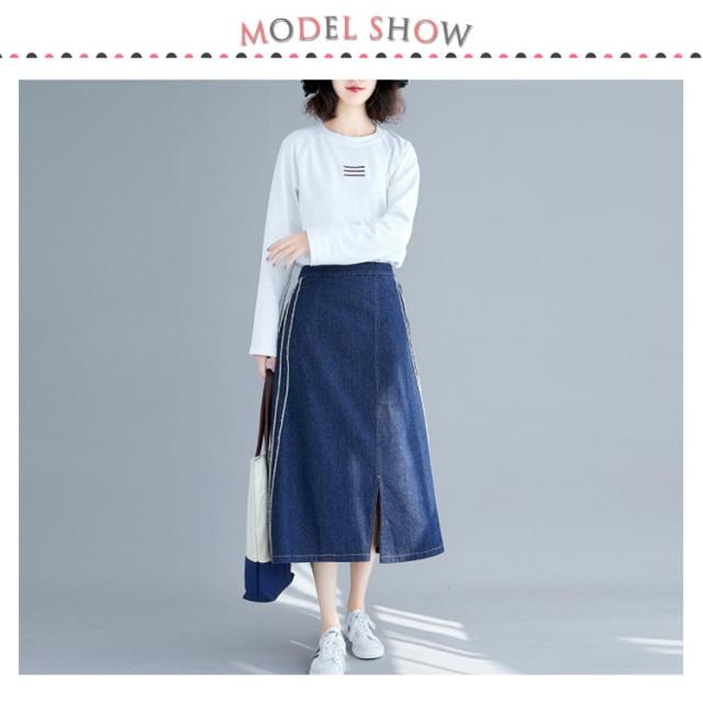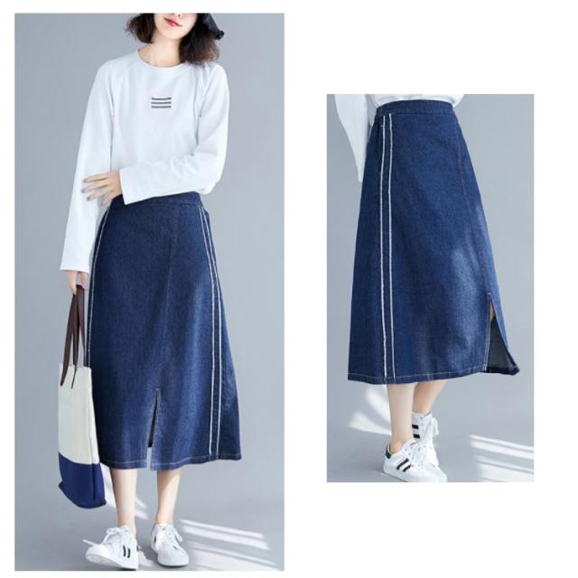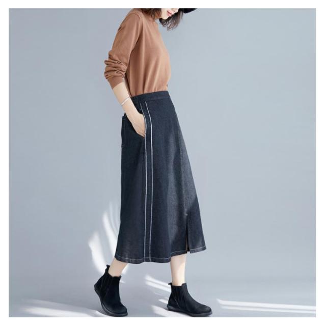 デニムスカート スカート ミモレスカート スリット入り カジュアルスカート デニムロングスカート Aライン 膝下丈 ハイウエスト トレロ 可愛い 春 夏 秋