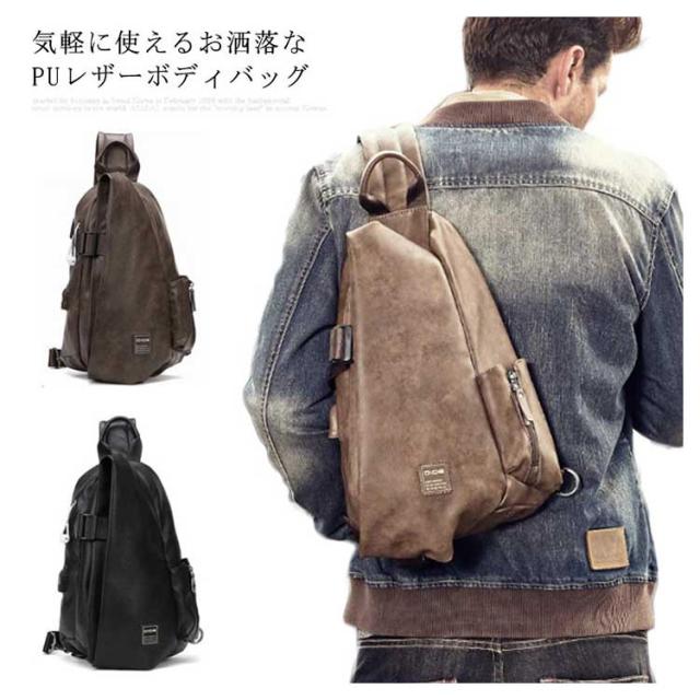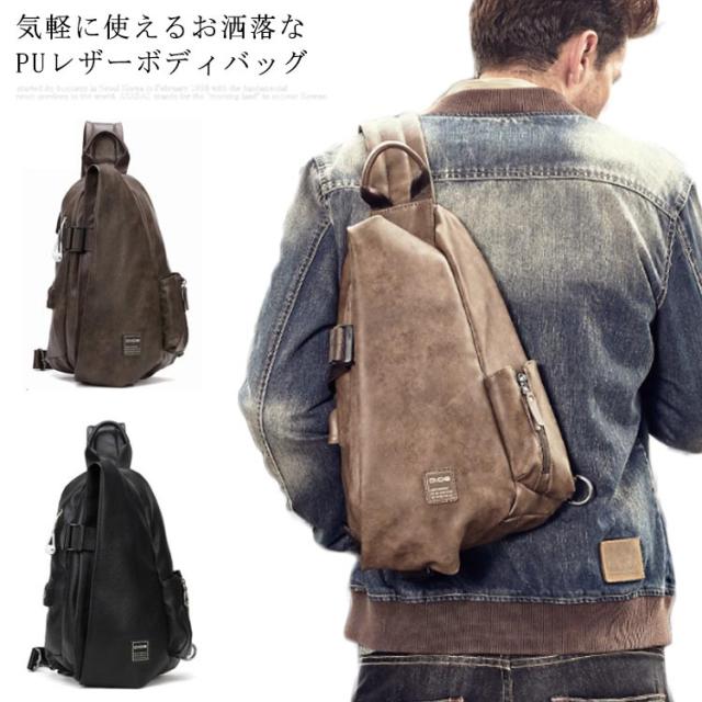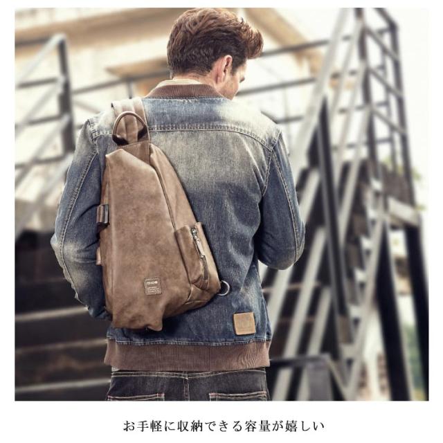 ボディバッグ メンズ ワンショルダーバッグ ショルダーバッグ レザーバッグ PUレザー フェイクレザー 斜めがけバッグ ヴィンテージ 光沢感 お洒落 上品 お出かけ