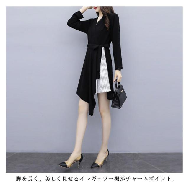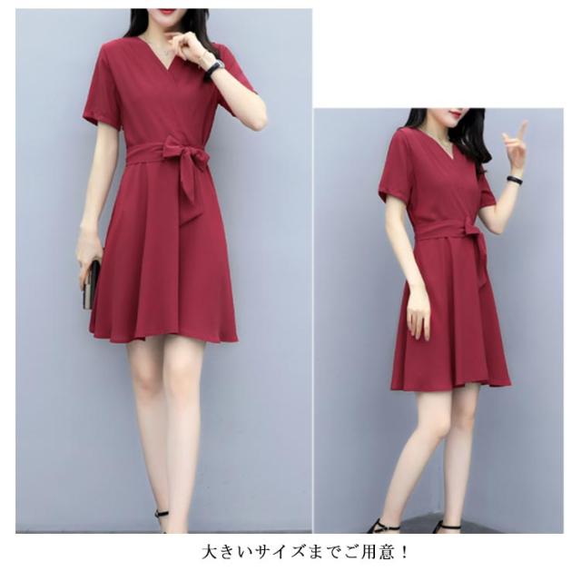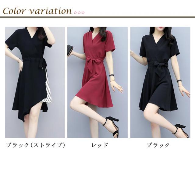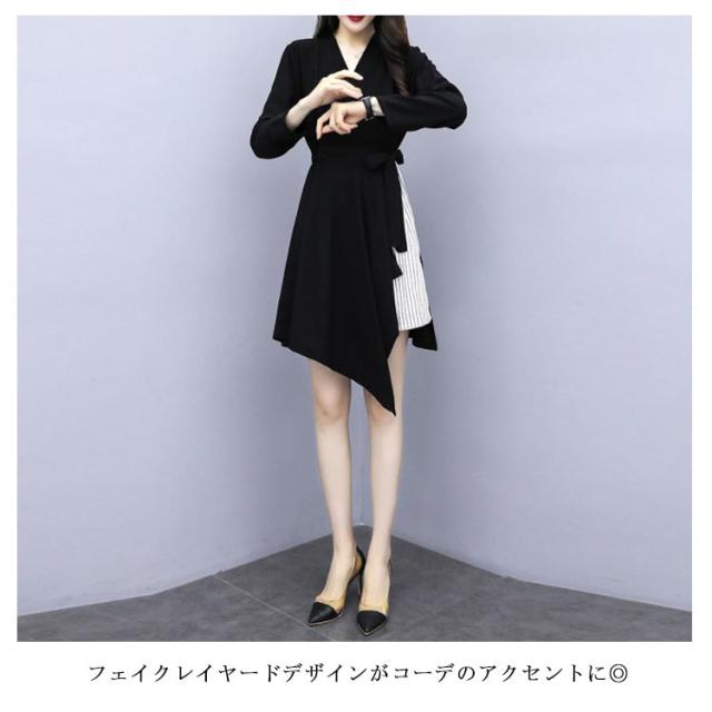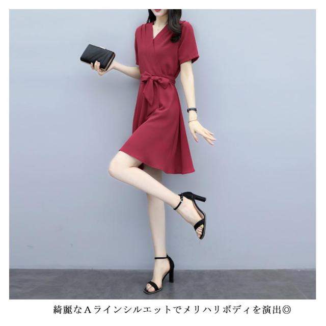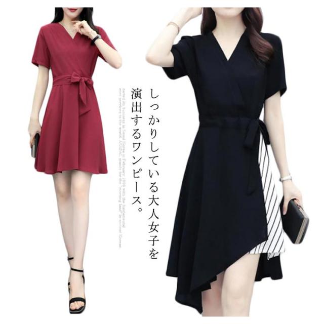 ワンピース カシュクール 重ね着風 通勤 半袖ワンピース フェイクレイヤード イレギュラー レディース 膝丈ワンピース Vネック フェミニン 優雅 ショート丈 着痩せ 細見え 体型カバー おしゃれ 送料無料