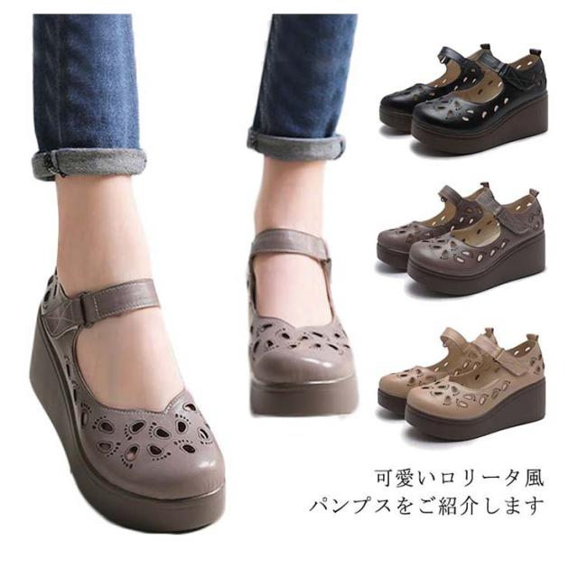 パンプス レディース ロリータシューズ ロリータパンプス PUレザー フェイクレザー アンクルベルト 厚底 フラットソール シューズ 靴 可愛い ガーリー 春新作