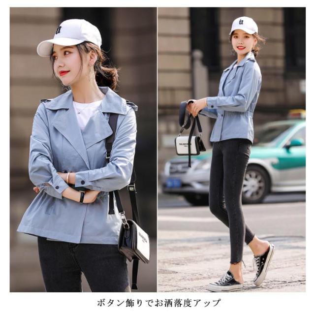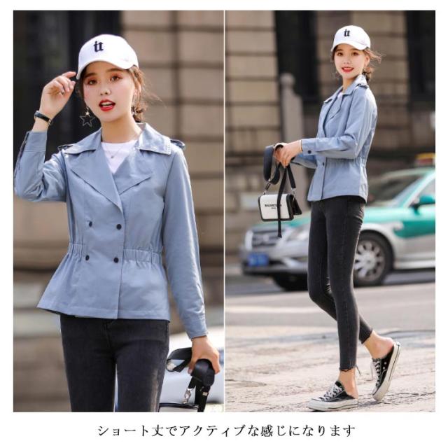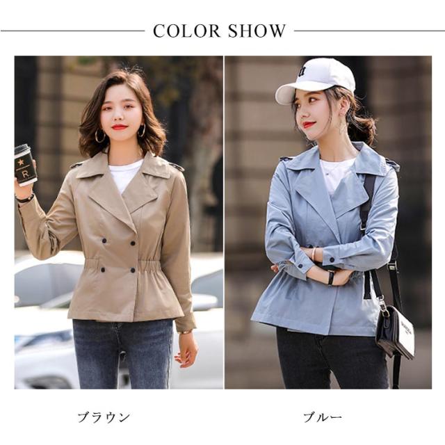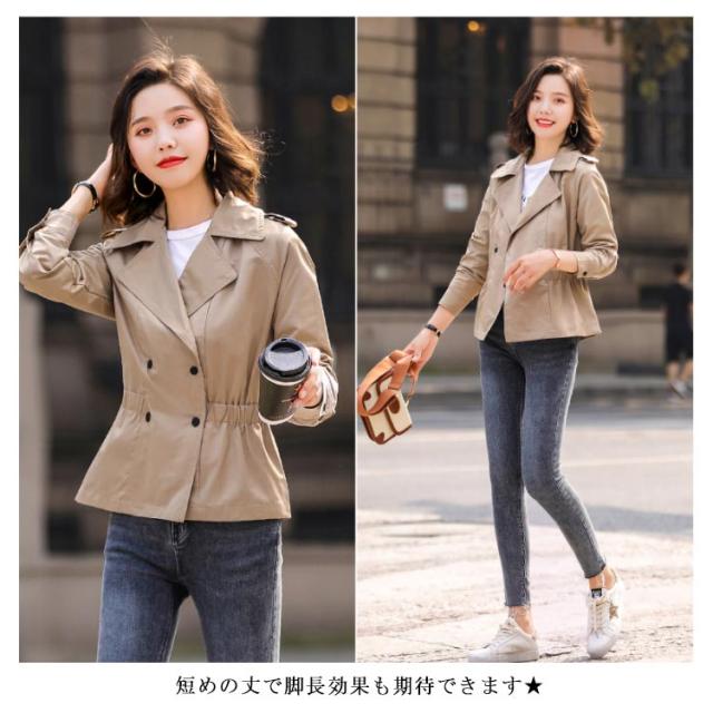 スプリングコート レディース トレンチコート 春コート カジュアルコート 春物 春服 アウター ショート丈 無地 ウエストゴム かわいい パーティー 二次会 春新作