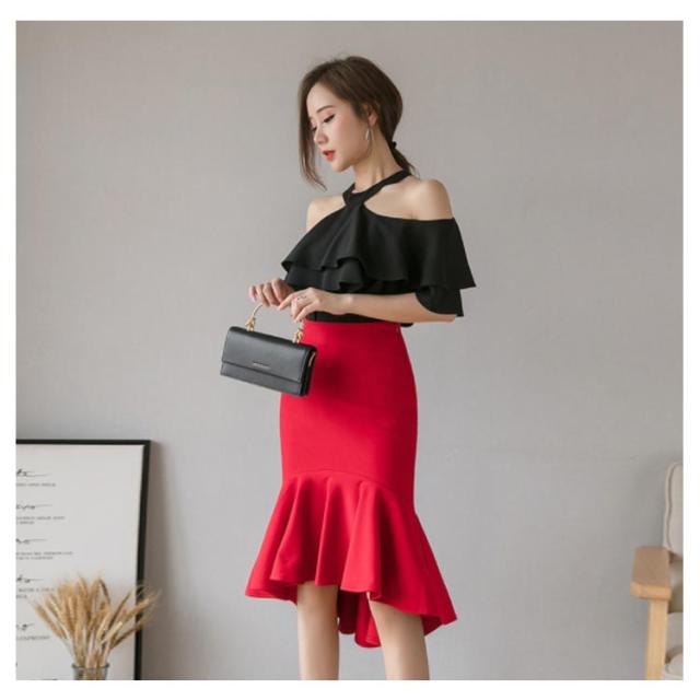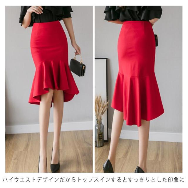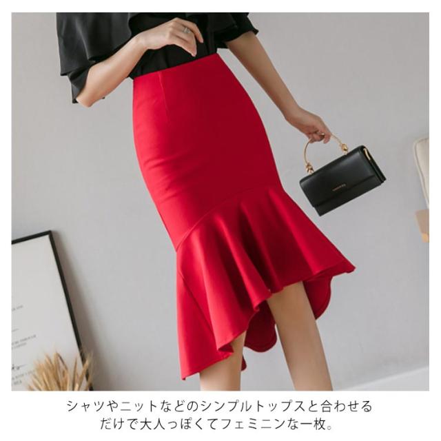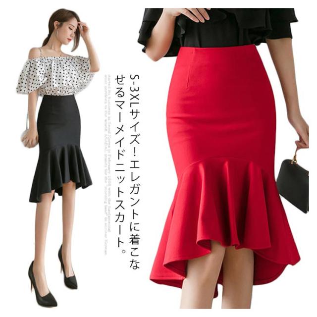 S-3XLサイズ!マーメイドスカート スカート アシメトリー フリルスカート マーメイド タイトスカート ハイウエスト 膝丈 ミディ丈 無地 通勤 オフィス カジュアル キレイめ