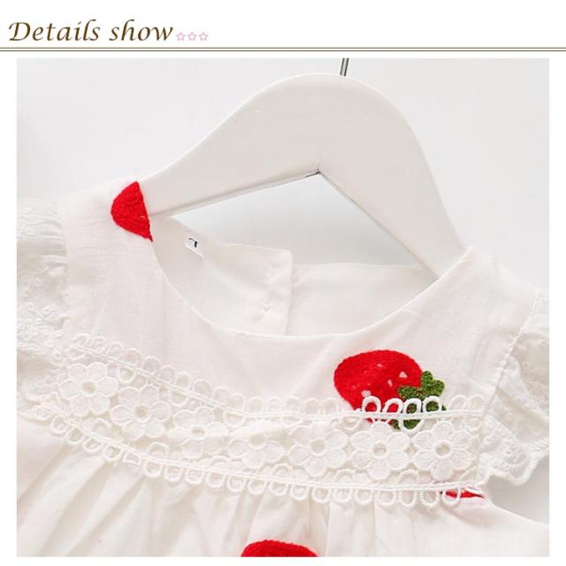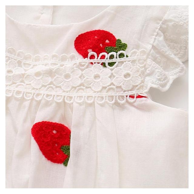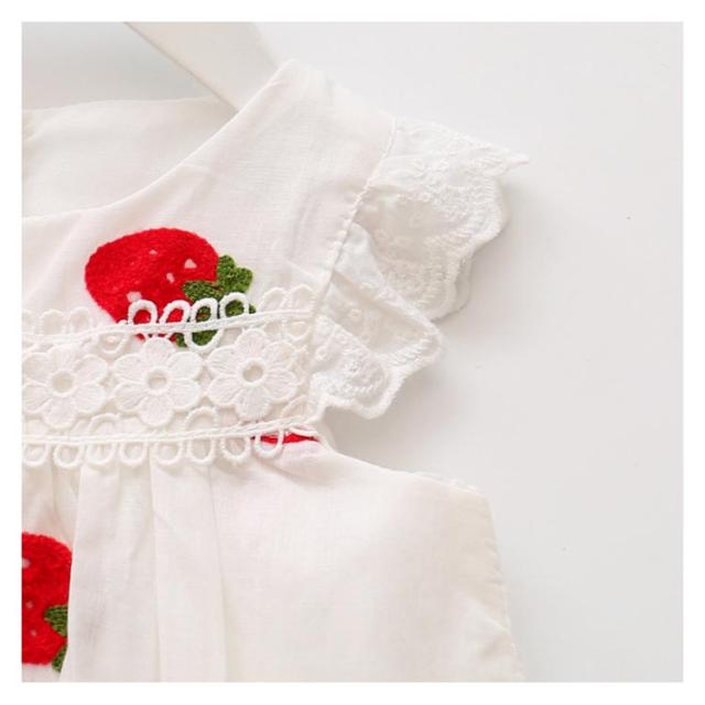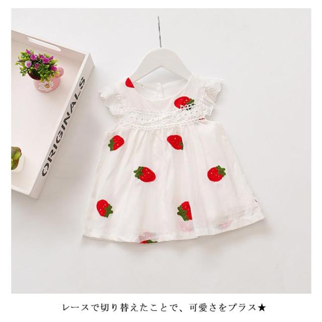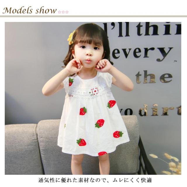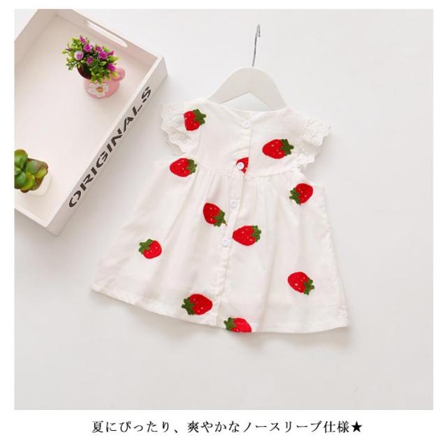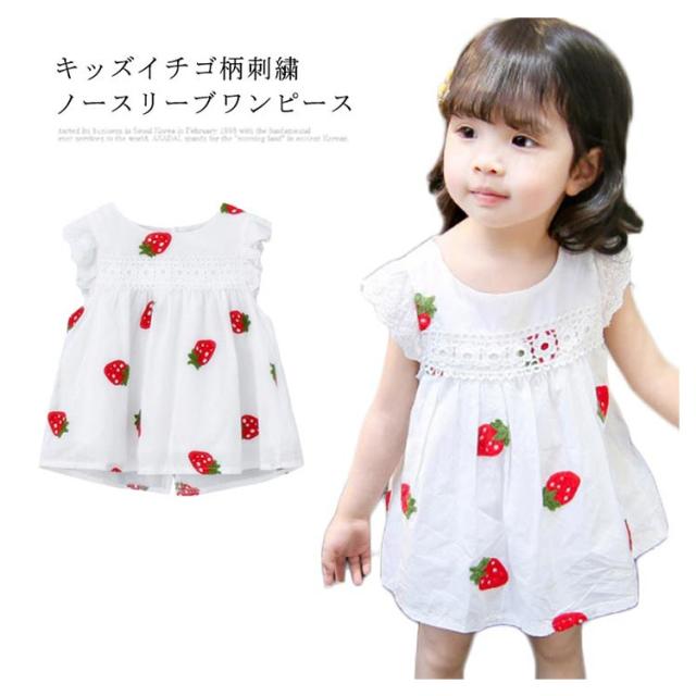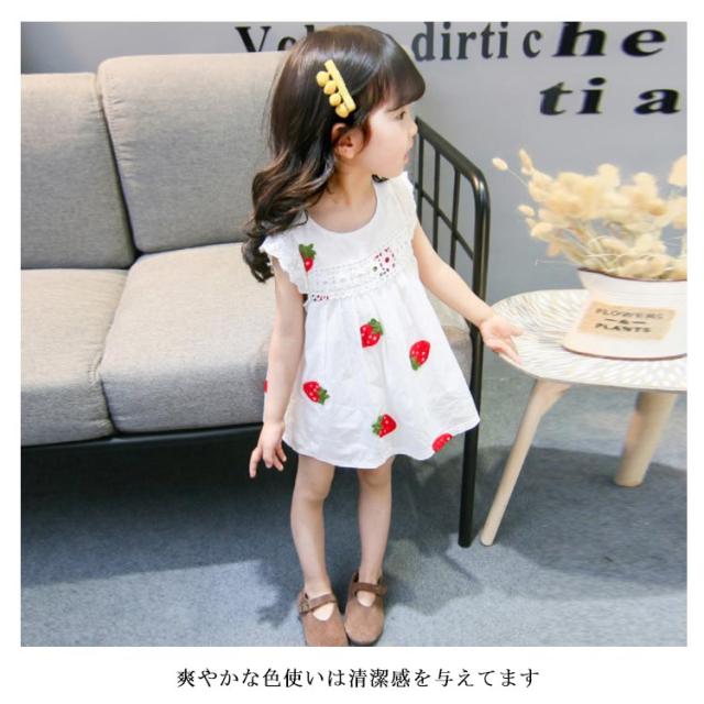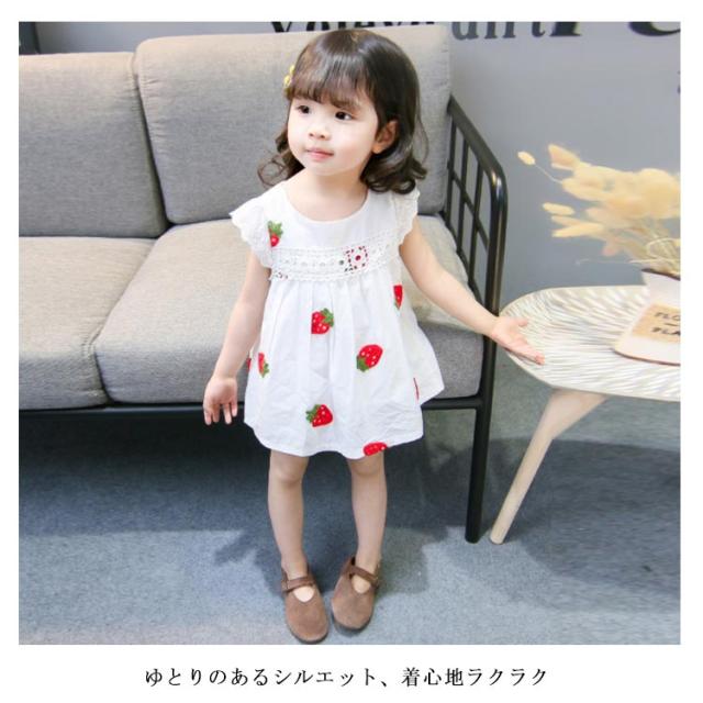 刺繍 子供服 ワンピース ノースリーブ イチゴ柄刺繍 コットン 綿 レース付き ラウンドネック ゆったり 薄手 通気性 ふんわり お洒落 カジュアル 可愛い 夏物 夏新作