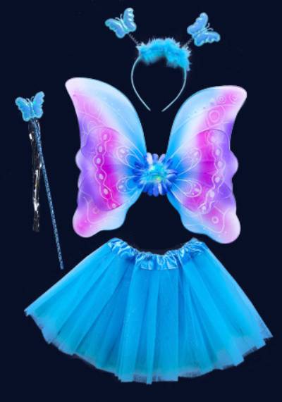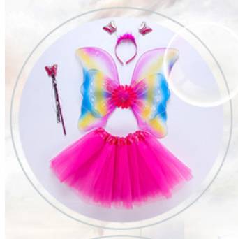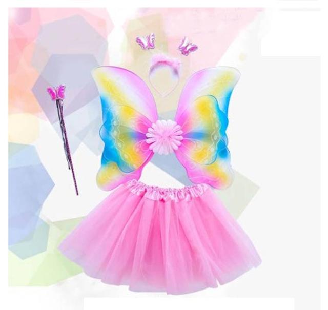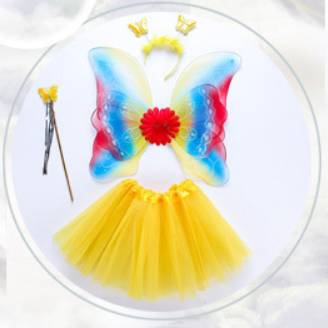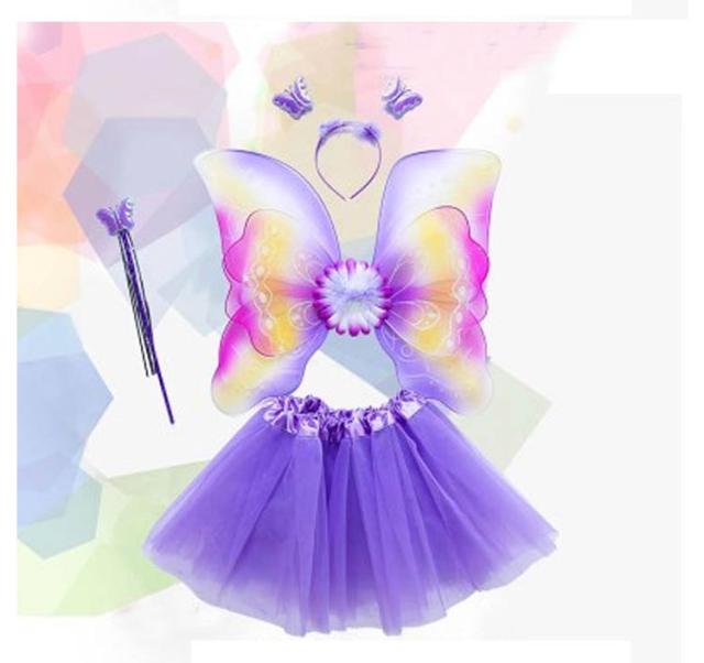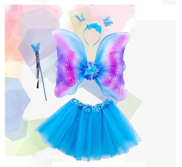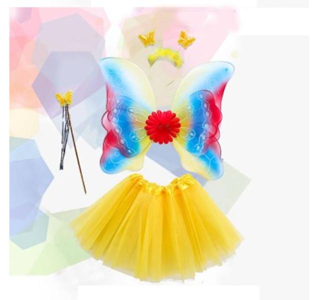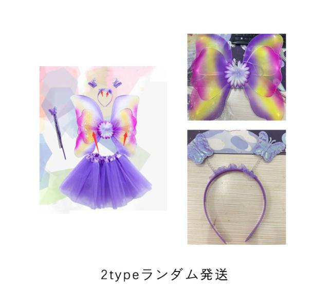 蝶々 翼 子ども用 4点セット コスチューム コスプレ衣装 花の妖精 キッズ/子供 ツバサ 羽根 ハロウィン 蝶コスプレ ハロウィン衣装 女の子 妖精 ドレス 蝶コスチューム 衣装 仮装 子供 羽 羽根 妖精 蝶 ガールズ スカート付 4点セット 6colors