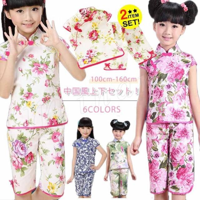 夏新作 子供服 2点セット チャイナドレス 上下セット 中国風 半袖トップス ショートパンツ 超可愛い セットアップ お得 プチプラ 女の子 キッズ 子供 学園祭 文化祭 コスプレ コスチューム 結婚式 演奏会 発表会 フォーマル