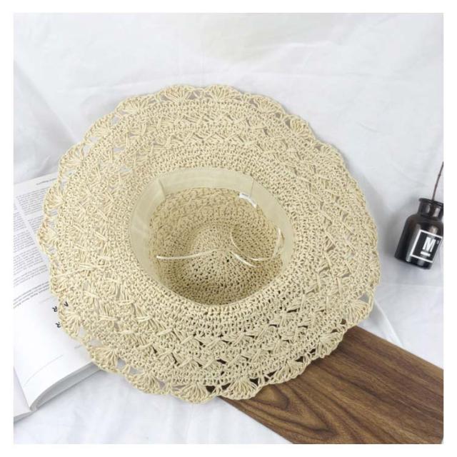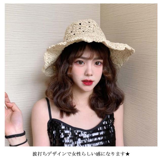 麦わら帽子 レディース つば広 ハット 帽子 つば広帽子 麦わらハット ストローハット 透かし編み 小顔効果 お洒落 大人可愛い 旅行 夏休み カジュアル 海辺 夏物 夏新作
