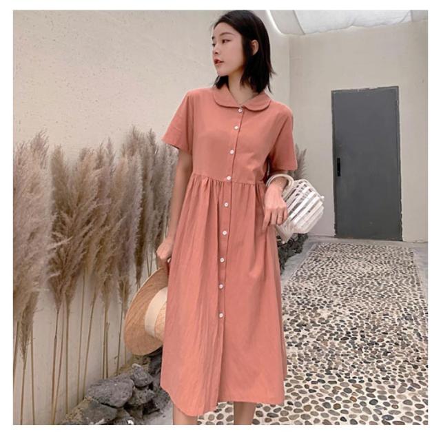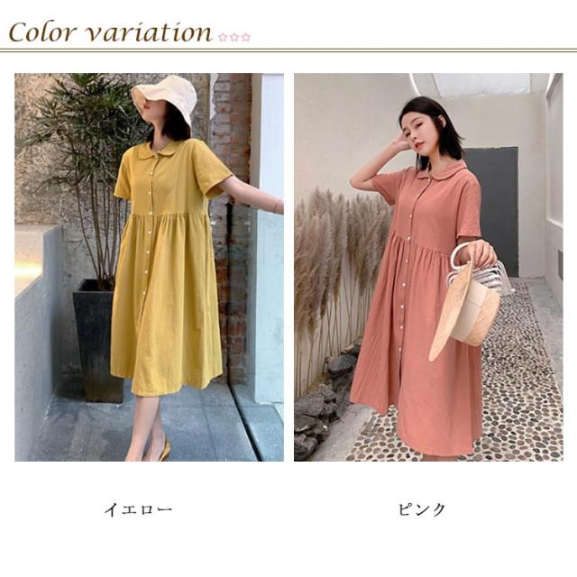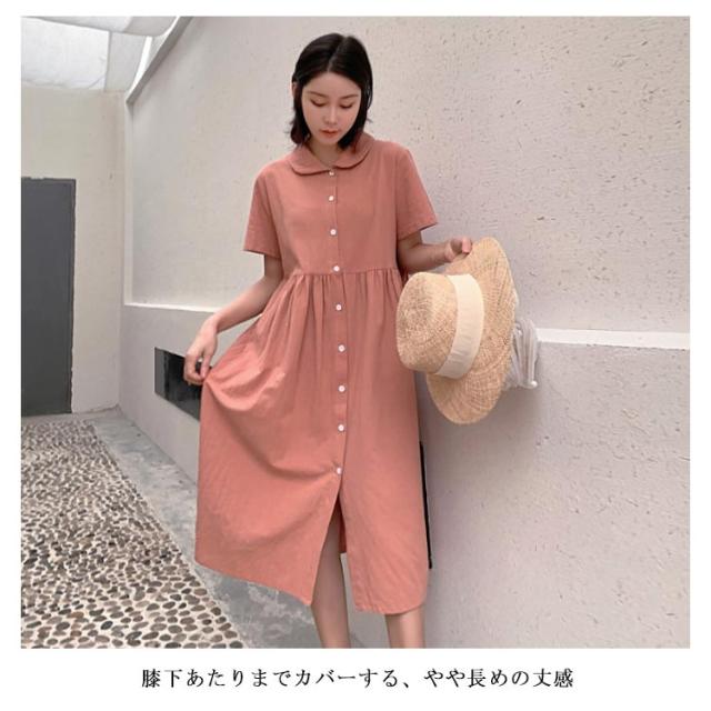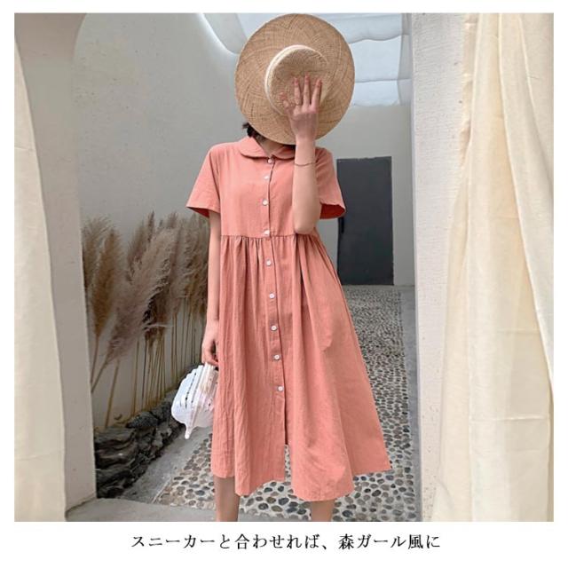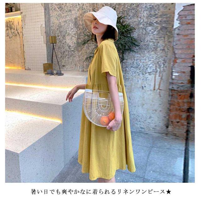 シャツワンピース リネンワンピース レディース 大きいサイズ シャツワンピース 麻生地 リネン混 半袖 ミディアムワンピース 膝下丈ワンピース 折り襟 薄手 森ガール Aライン ゆったり お洒落 カジュアル スッキリ 爽やか 夏新作