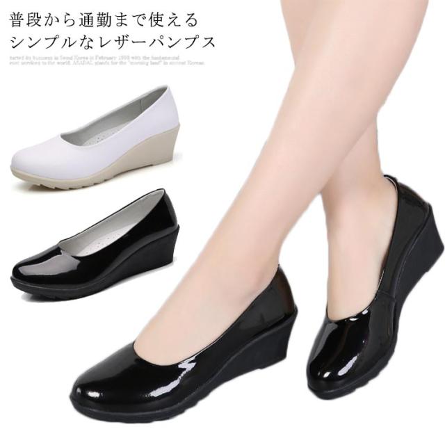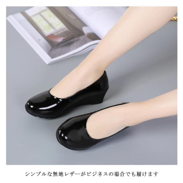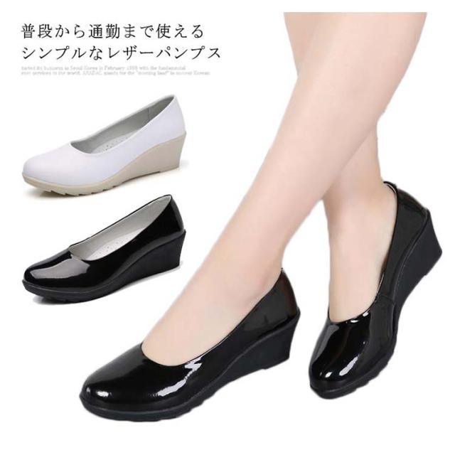 パンプス レディース スリッポン 合皮 フェイクレザーパンプス PU フラットソール ローヒール ラウンドトゥ 光沢感 ゴムソール 柔軟性 滑りにくい 疲れにくい キレイめ 普段 通勤 ビジネス オフィス 2020春新作