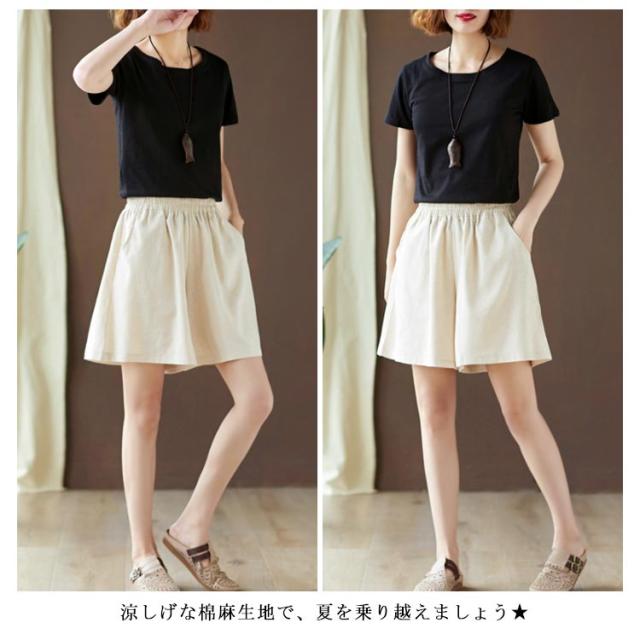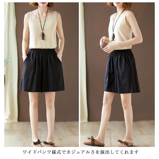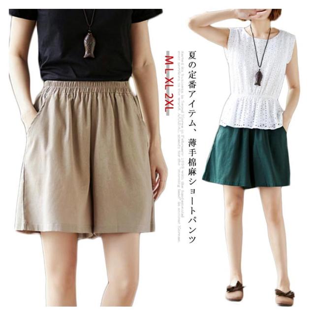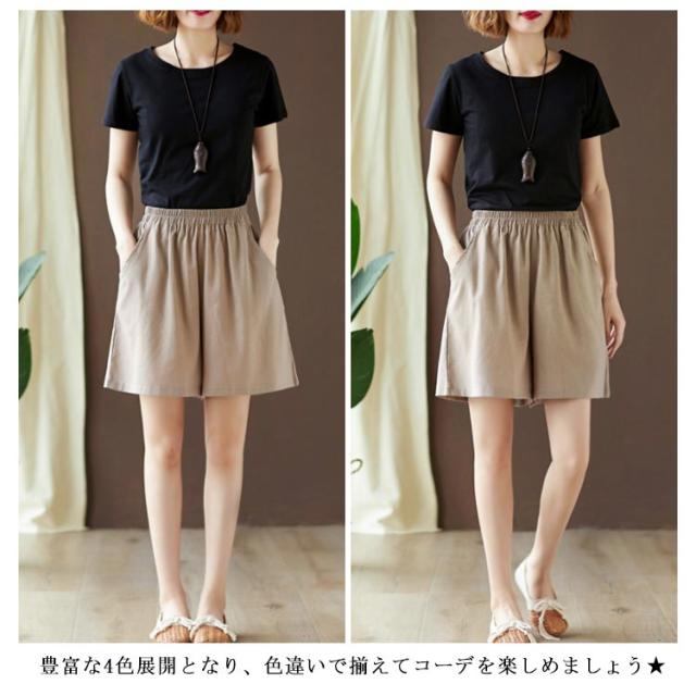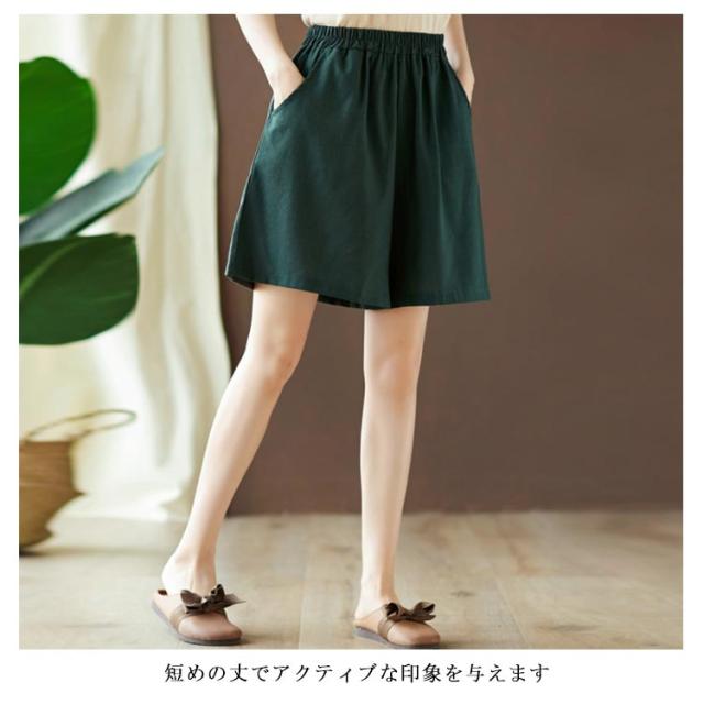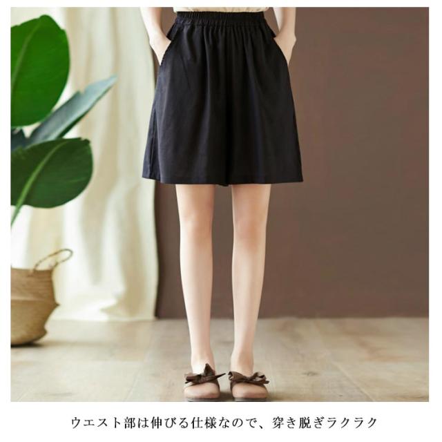 棉麻パンツ レディース 棉麻 棉 麻 リネンパンツ リネン ワイドパンツ ハーフパンツ ショートパンツ ゆったり ゆるパンツ ポケット付き ウエストゴム 薄手 ボトムス 春 夏 春新作