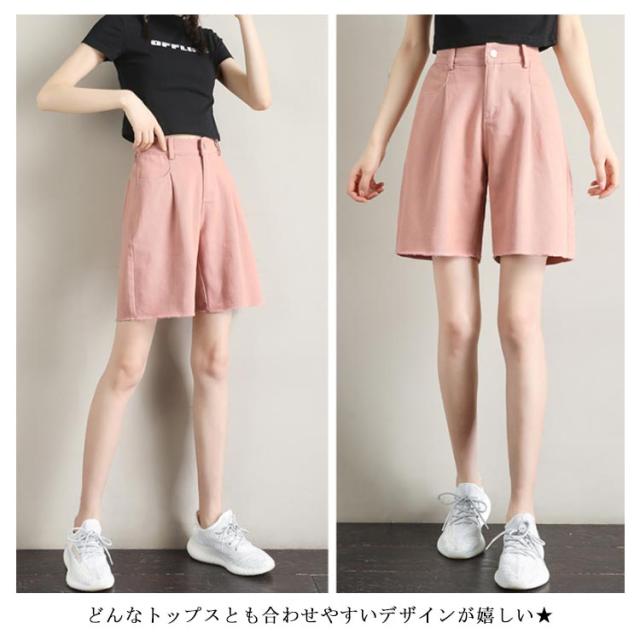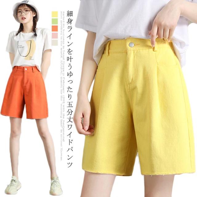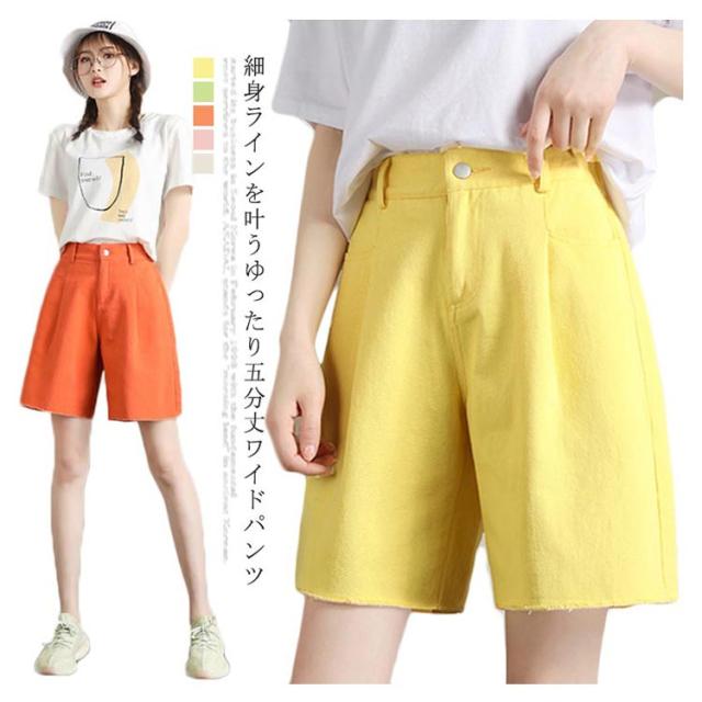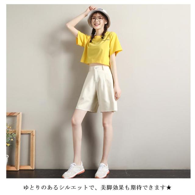 ハーフパンツ レディース ワイドパンツ 五分丈パンツ ショートパンツ コットンパンツ 無地パンツ カジュアルパンツ 綿100% コットン ガウチョ スカンツ スカーチョ 薄手 ポケット付き お洒落 キレイめ 美脚 ゆったり 細身 着痩せ ボトムス 夏新作