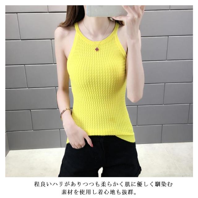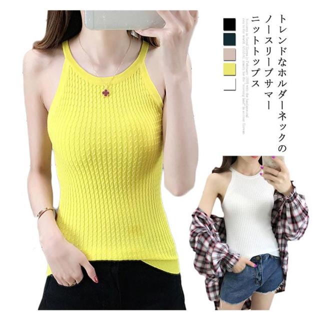 サマーニット レディース ニット 春 夏 春夏 ノースリーブ トップス 黒 白 リブニット タンクトップ キャミソール ニット ケーブル編み フィッシャーマンニットシンプル 無地 薄手 ホルダーネック リゾート 大人 20代 30代 40代 OL ママ 母 春新作